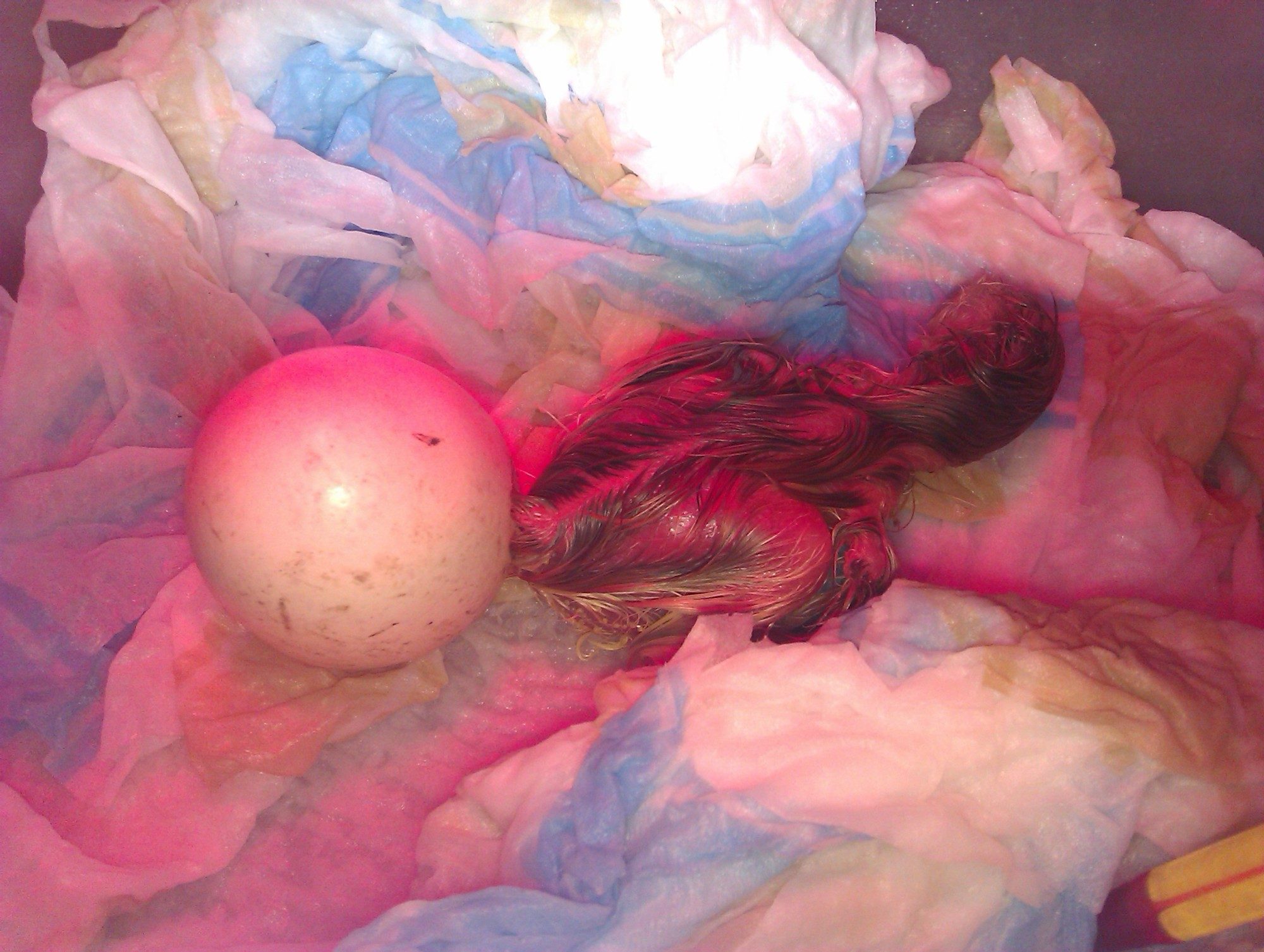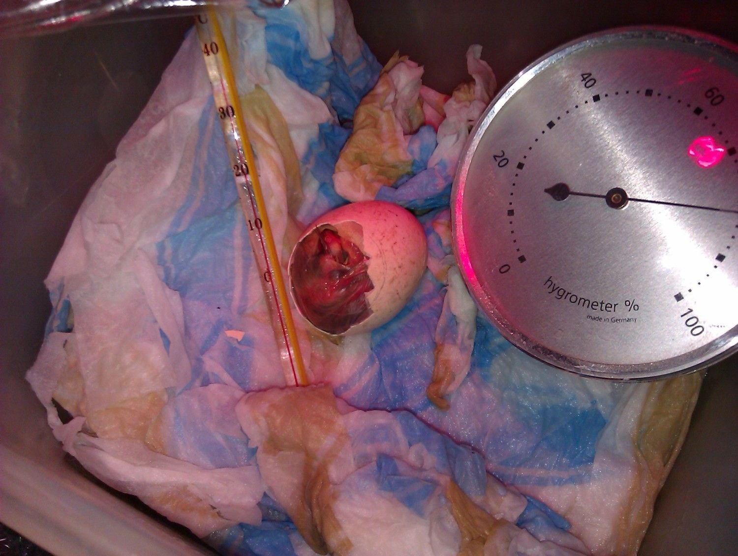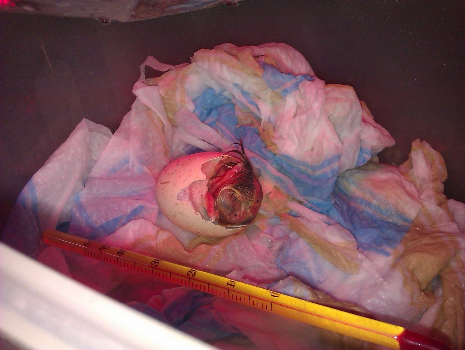 I was so proud of myself at that moment even though I was far from finished!I put it back into a improvised incubator which worked great. I used a heat lamp and some wet tissue papers for moisture.