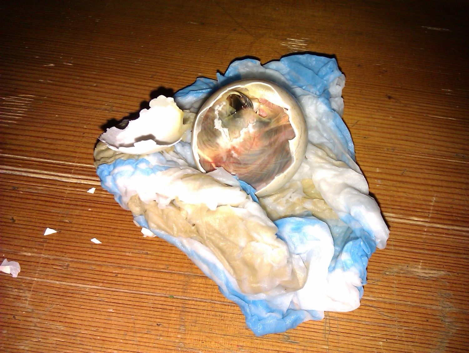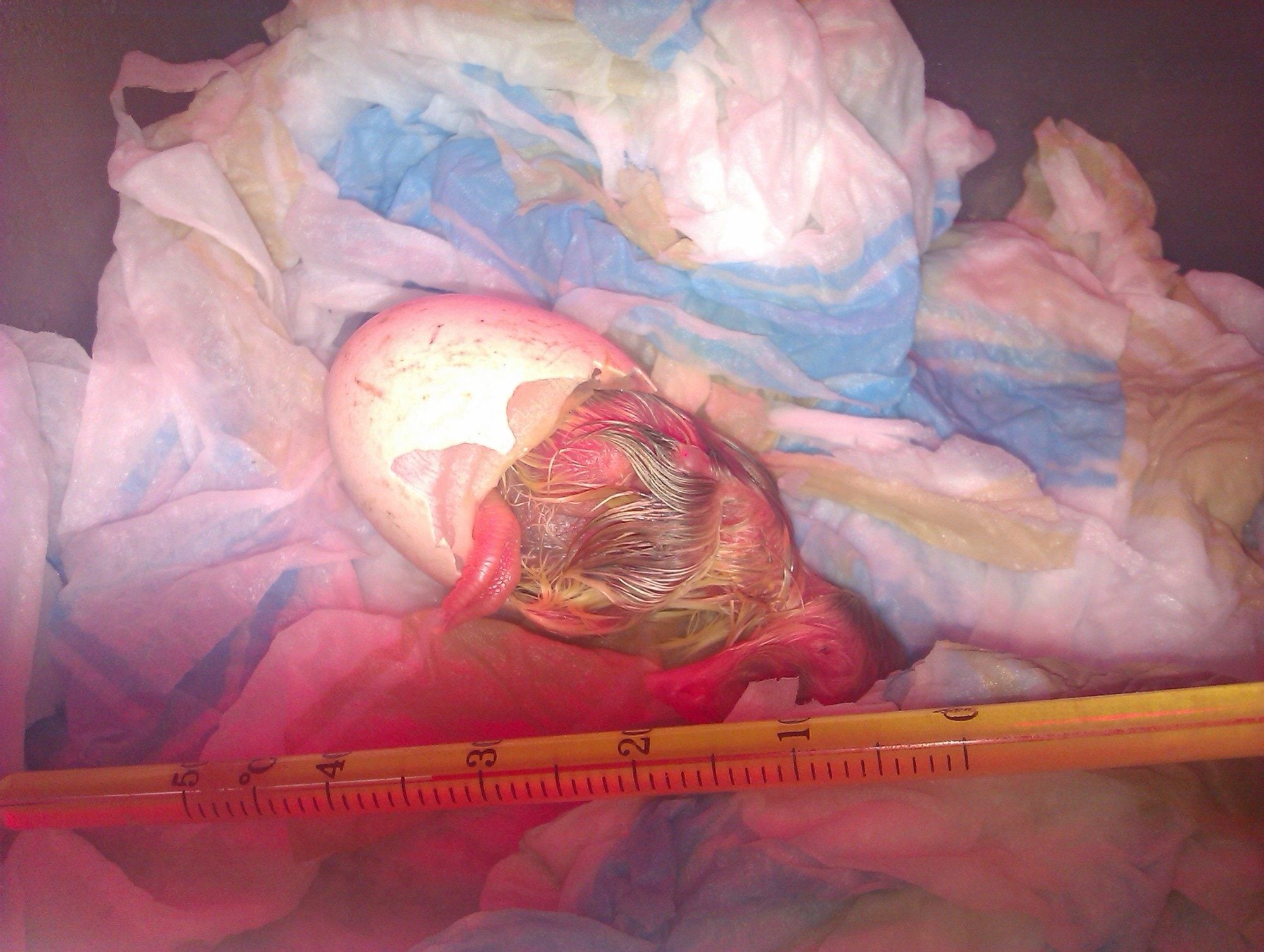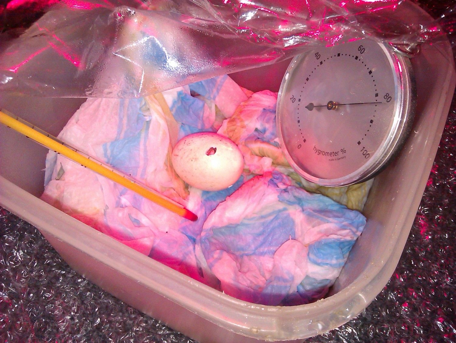 I was so proud of myself at that moment even though I was far from finished!I put it back into a improvised incubator which worked great. I used a heat lamp and some wet tissue papers for moisture.