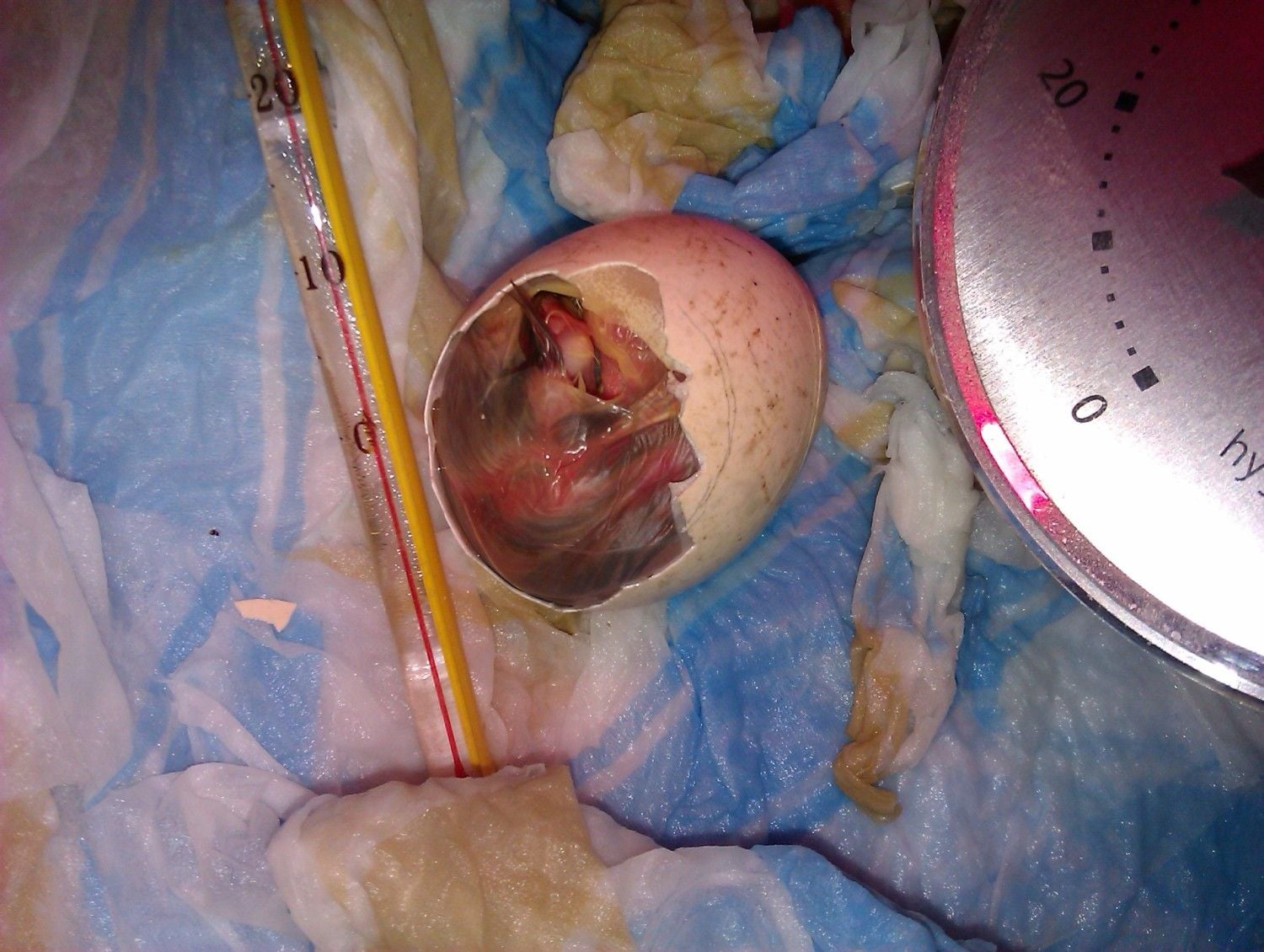 After some time I started removing the membrane around the chick. As I removed the membrane there was absolutely no bleeding at all which means that the chick was mature and that it was ready to hatch.