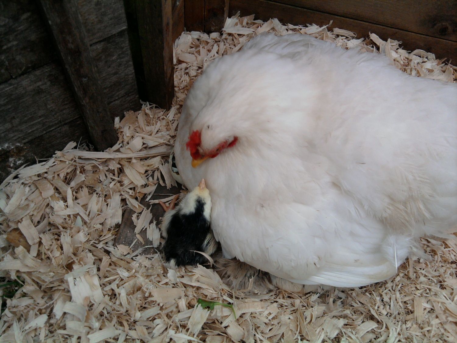 The broody hen was a pekin bantam (Henrietta)
