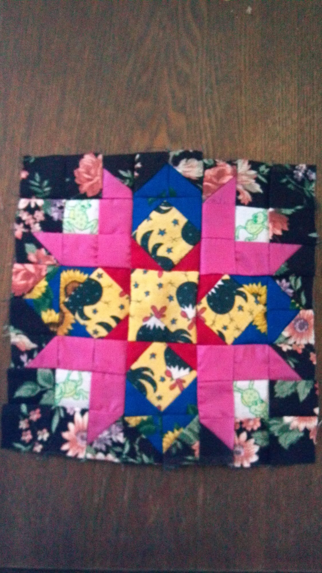 I think that is a beautiful block, so I think it fits right in, btw I had to do away with the petals on my blocks understand about time constraints.