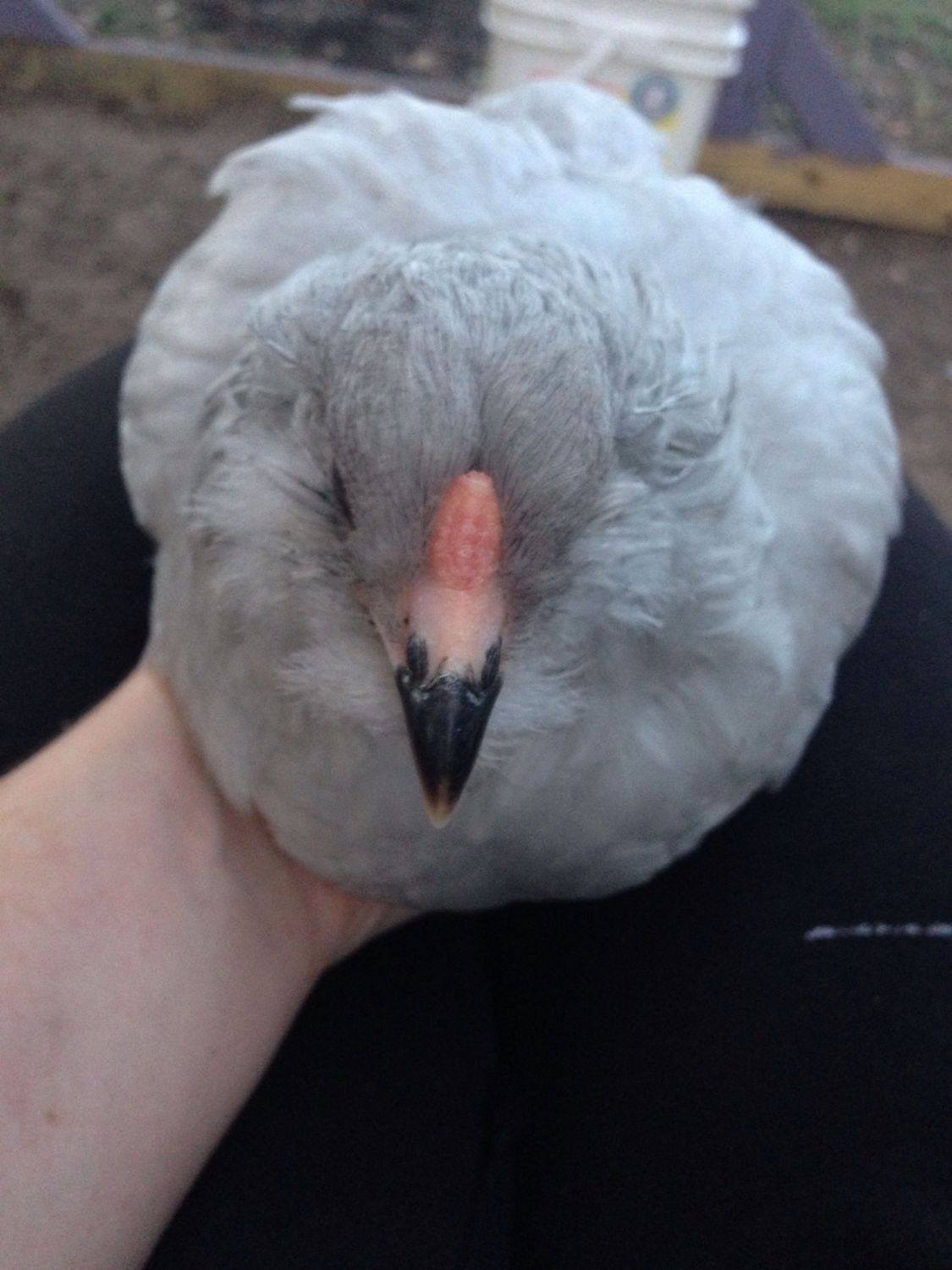 Hi all! My first lavenders are starting to develop or not develop combs. So could you take a look and help me guess on sex? I only have two. They are from P. Smith and are 8 weeks old now. My camera makes the combs look red but they are only slightly fleshy pink in the sun light. I originally thought pullets but I'm thinking #1 might be a roo.
