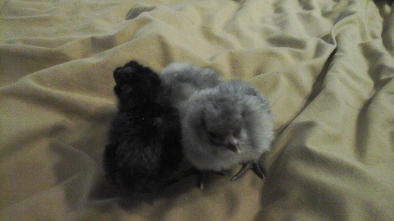 Ok, so I have a question for you lavender experts. I have this little chick here (on the right). The father was a pure lavender ameraucana roo and the mother was a white easter egger. This baby looks to me like lavender (am I right?) I need to get an updated picture of him since he's about a month old now but my question is, if I breed him to my black/lavender split girls, will I still get either black or lavender babies? Just curious if I can use him. I hatched him or of desperation when I had to put down my lavender roo. I wanted to try to save his genes. Well, what do you think?