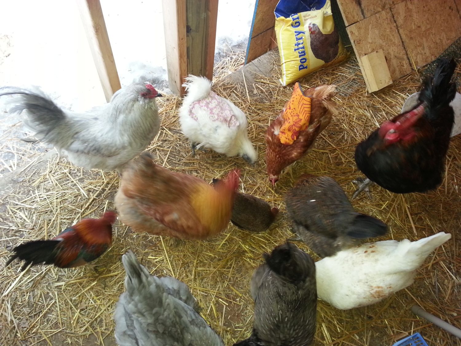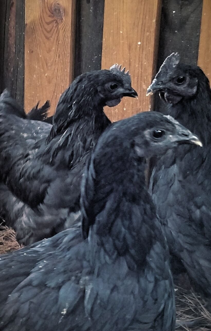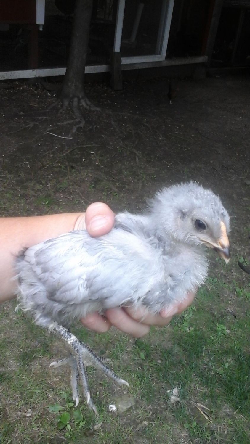 I also found a picture that has dad, mom, and a blue copper marans in it (color comparison for dad). Malcolm was the dad. He's in the upper left corner of the picture (lav ameraucana). Sugar was the mom and is on the bottom right corner (white EE), and the blue copper Marans is in the bottom left corner. Not the best picture but good enough to see the colors.