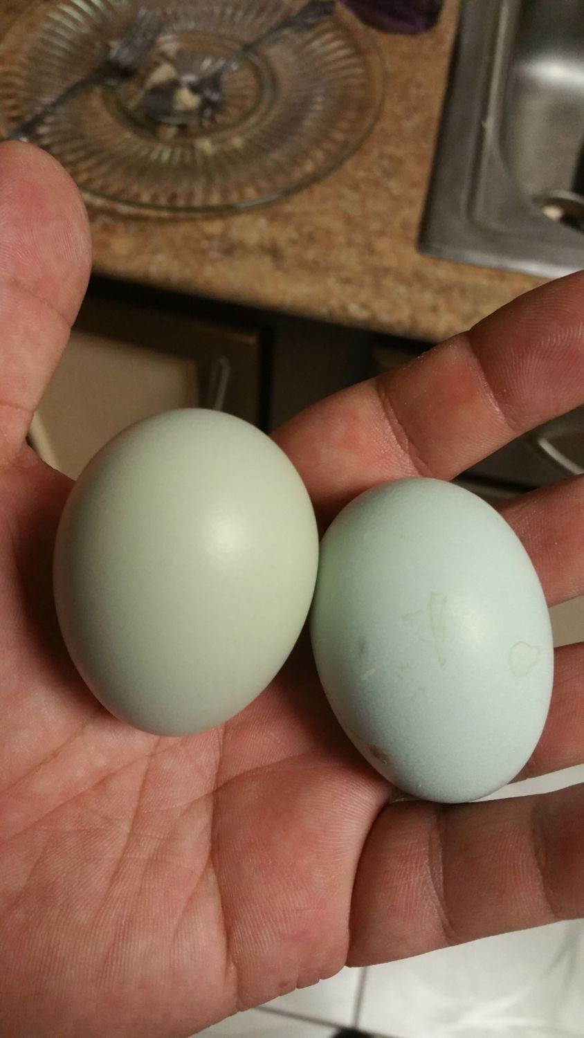 You should ALWAYS give credit to the source you copied from. Please click on the link to read the entire FAQ & answer from the Fowl Stuff site, along with several others.I have a white Amerucana that lays Giant light blue eggs and Lavender Amerucanas that lay dark green eggs and an Easter Egger that lays a color in the middle. I Copied this clip for you