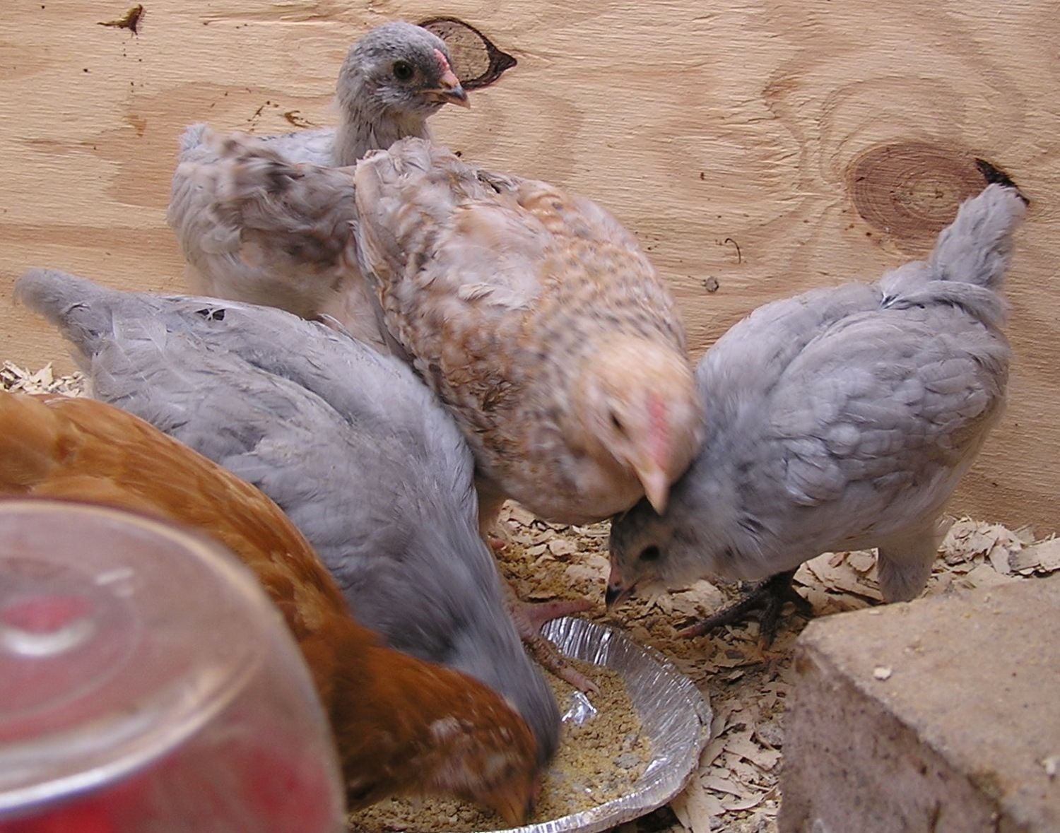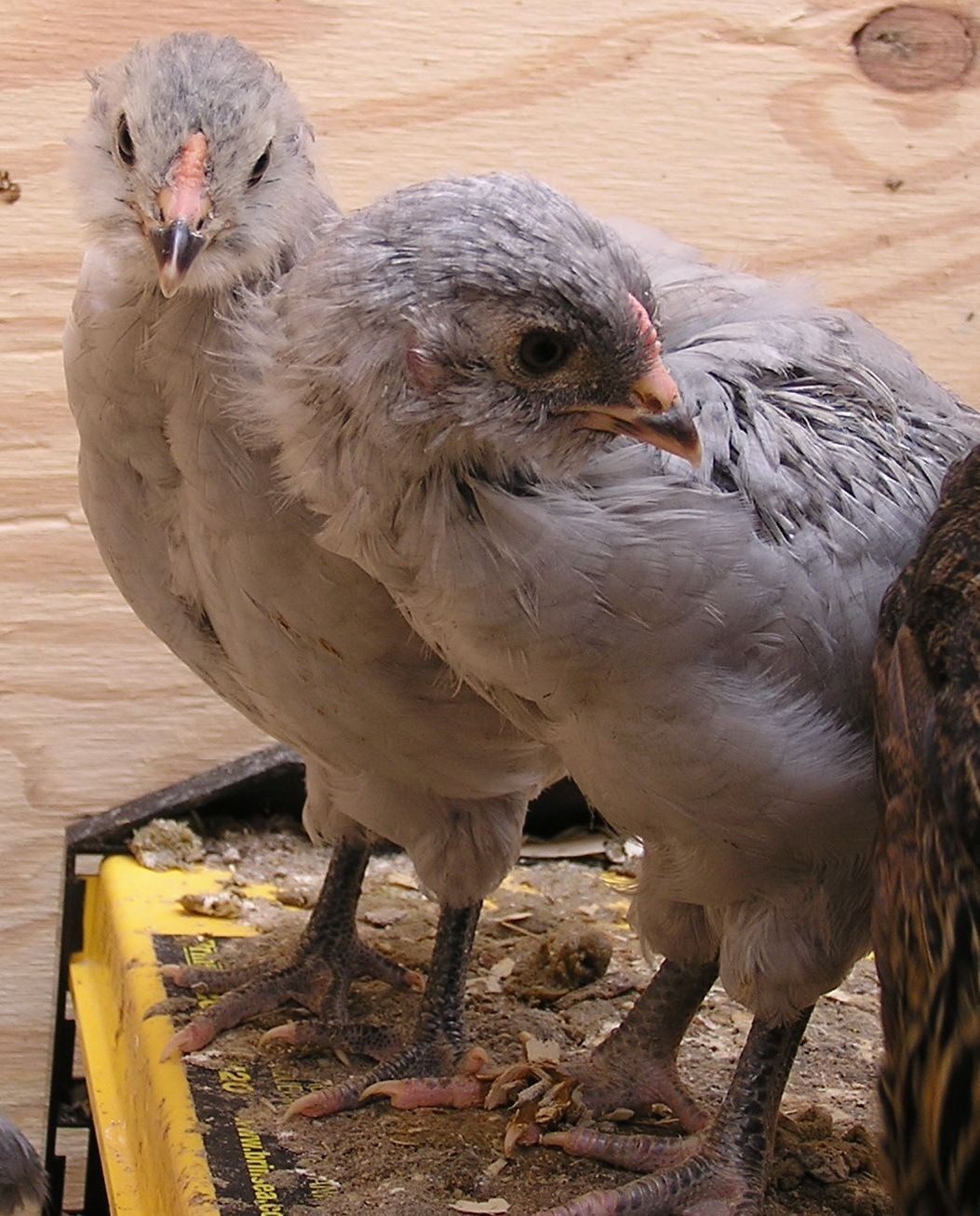 Sorry the last photo is blurry. There are 4 lavender chicks total, but I only got 3 here. I think the 2 with their heads down are the girls, and the other is a boy: