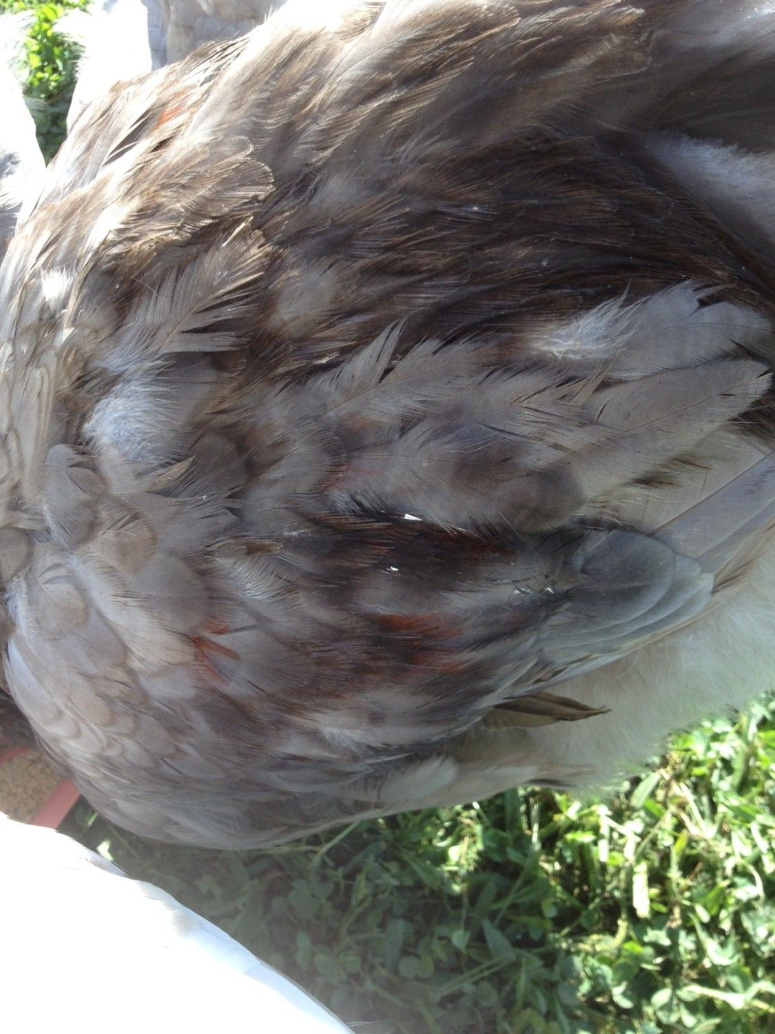 one of my lavender's has some red feathers coming in under the wings. I pulled the feathers back thinking it was some polk berry juice but sure enough there are more coming in. Anyone have this before? He is such a pretty bird and is a beast in size compared to the others.