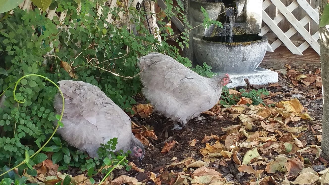 I was giving our birds their evening treats (funny how spoiled they can get. If I don't show up with their evening bread, popcorn and raw oatmeal, they will stand by the fence and stare at the house and if I don't show up before dark, they have somebody watching for me in the doorway and will come out even with barely any light to have their evening snack) and Larry Bird aka/Lily was standing on the parameter of the flock as he usually does. In the scramble to get a treat, he fell over a hen, turned around and fell over another one. I've never seen such a clutzy bird in my life. I'm hoping it's just an awkward adolescent phase he is going through.