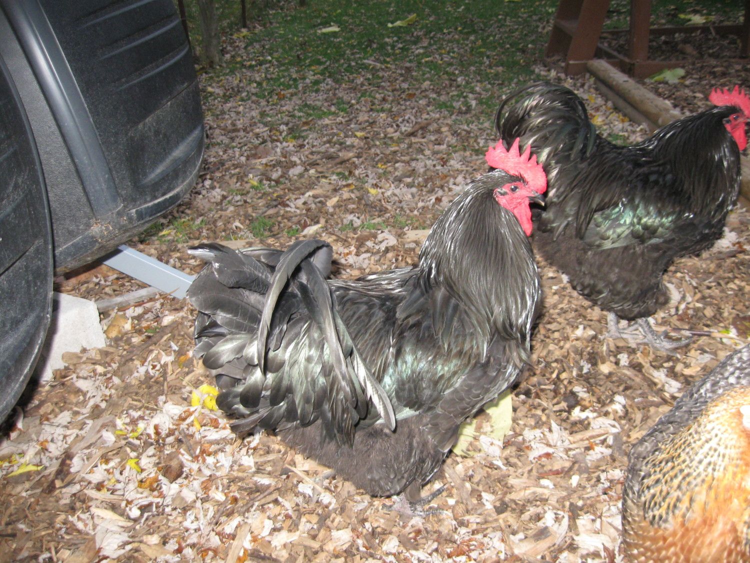 Trying to decide if we should keep the back up or go down to one roo as we had planned On one hand, it's great having 2x the protection, but the limited winter space could be a problem. If keeping one roo, which one is better?. #2 has a softer & less frequent crow. However, he's not as gentle with the hens as #1. #2 is also more skittish. He runs away if we bend down to pick him up or pet him. Roo #1 would make my daughter happy (if he keeps his gentle temperament), and I like his appearance a little more. #1 crows a lot & it's not as pleasant a pitch.