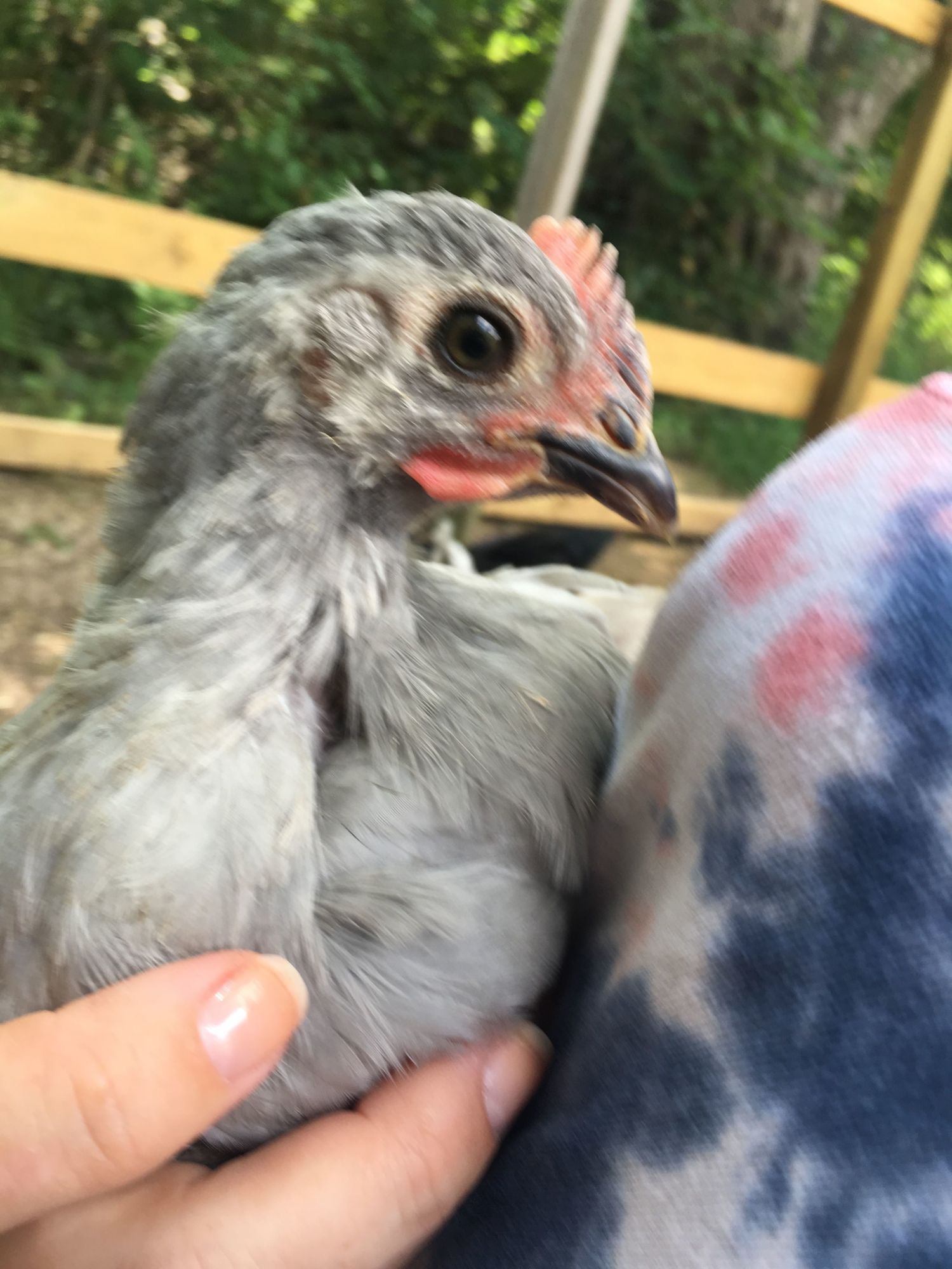 "She" looks a little roo-ish to me. It is very difficult to sex orps. Although the comb is short, the waddles look like they're dropping. At only 7 wks, that is what makes me think it's a male.This was supposed to be a sexed pullet. I am growing increasingly concerned as to the gender (she is 7 weeks old) but have heard that LO's can be hard to sex. I would love to hear from some of those who are truly experienced with LO's. I already have one mis-sexed chick of a different breed, so now I am very concerned. Thoughts?
