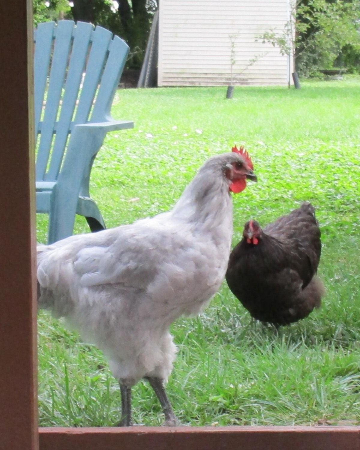 These are 16 weeks with clear saddle feathers and you can see the difference in comb and waddles, our pullets have smaller combs than some strains of Lavender Orpington though.