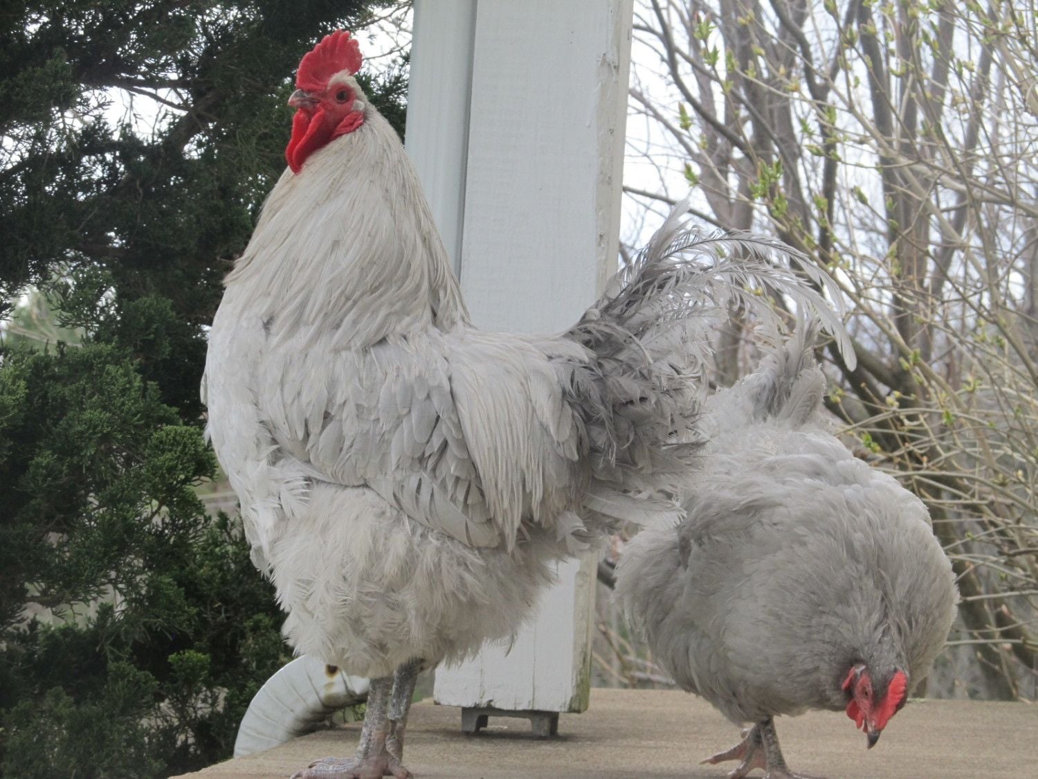 I would like to join in. The short story is we have one hen Collette, and one rooster Ricky that we hatched out last May 17Th, here they are all grown up. They are the best!!!!! We have some eggs in the incubator due to hatch May 4Th, and we are rotating out eggs to put under Collette when she goes broody again. We are so excited, these chickens think they are people and no matter what they are doing will always come running when they hear us go outside. Rocky is the best rooster ever, he is gentle with everyone including Collette, but what really endears him to me is, anytime I do anything in the coop he goes in first to inspect and "fix" the nesting box all the while talking to her, then he gets out and she goes in and lays her egg. Oh, how we hope and pray to get some more hens. Collette pretty much lays an egg a day, even in the winter. She has gone broody twice, but we never let her hatch any as every time she went broody we had already taken all the eggs.