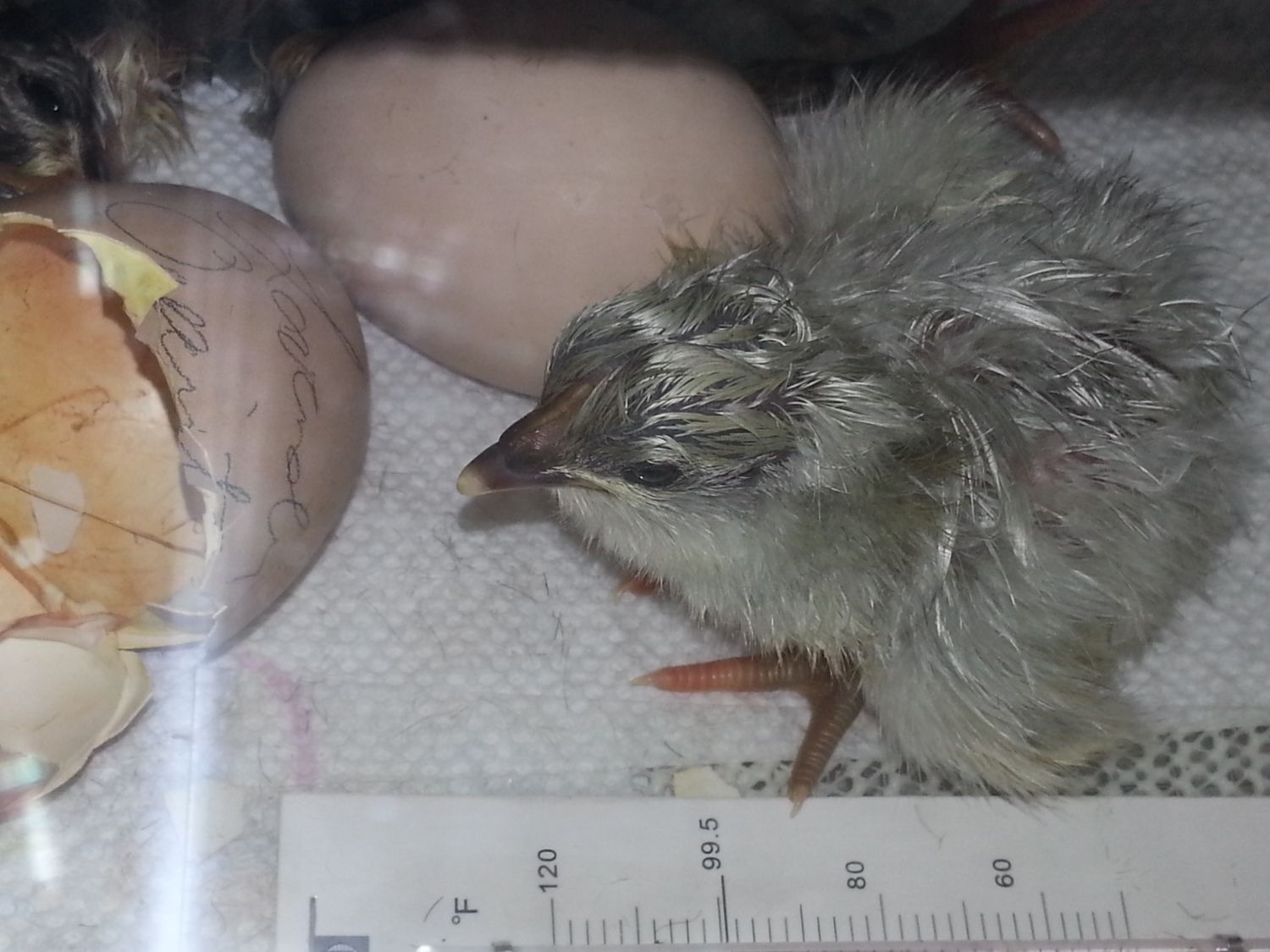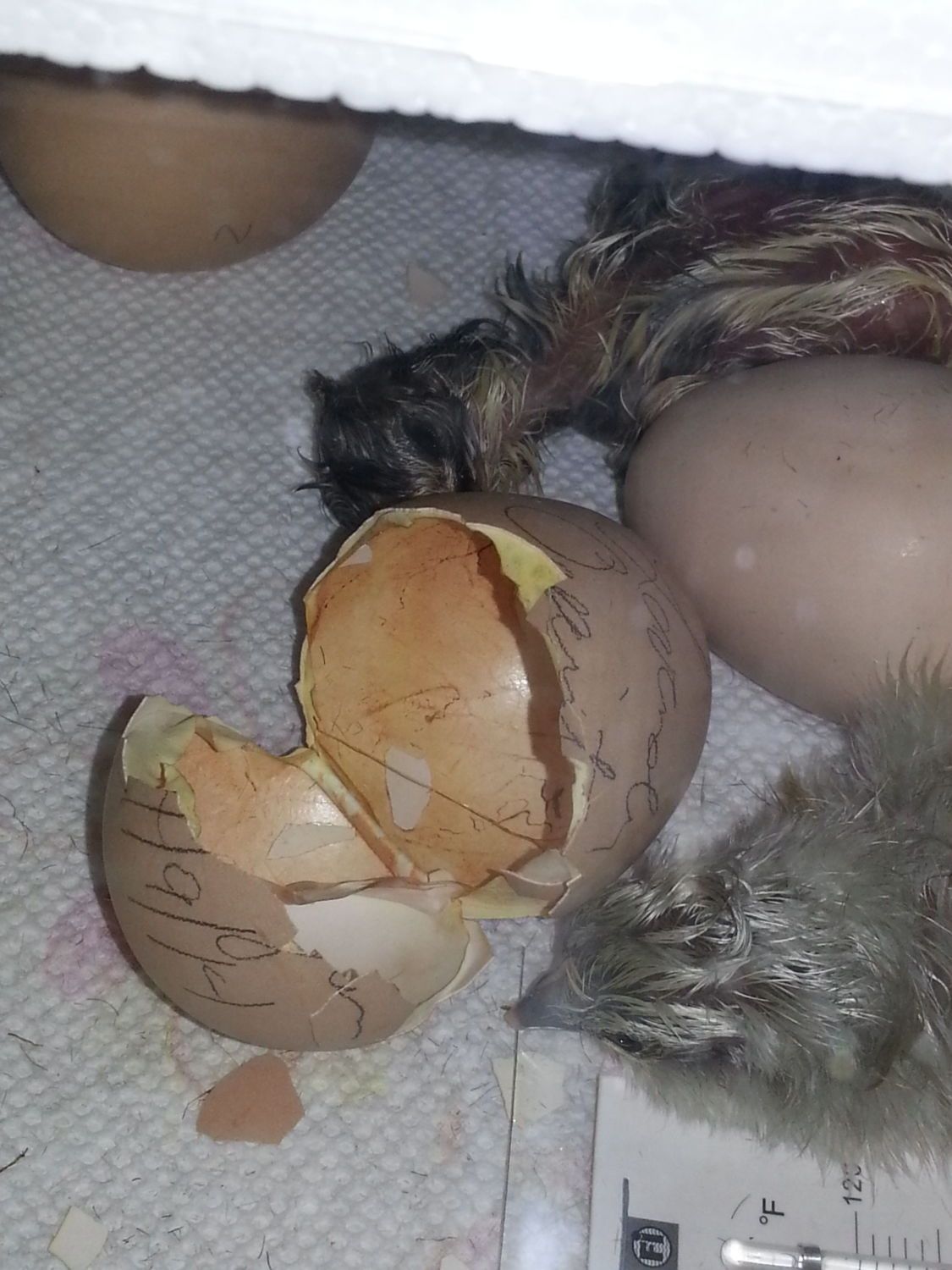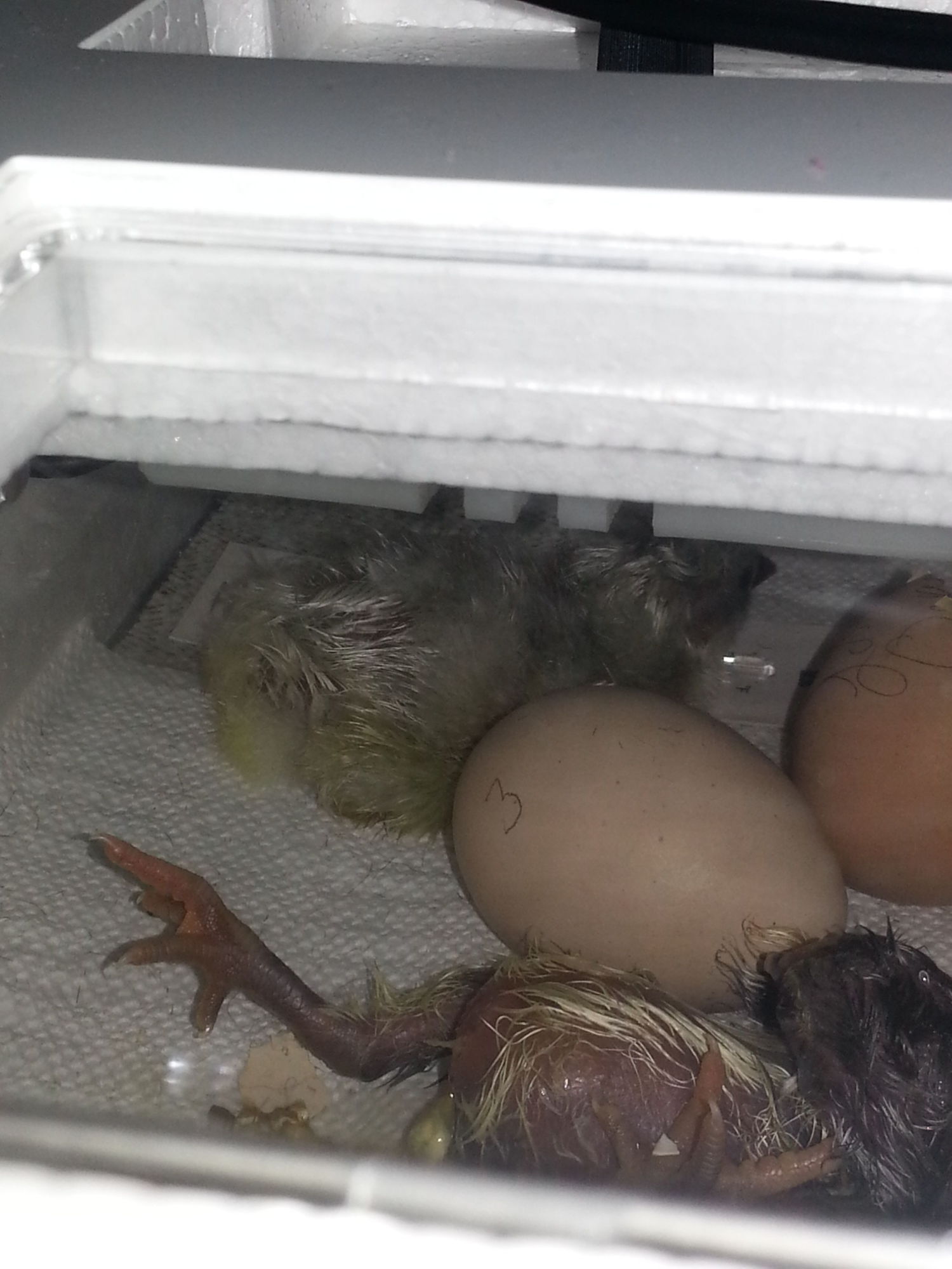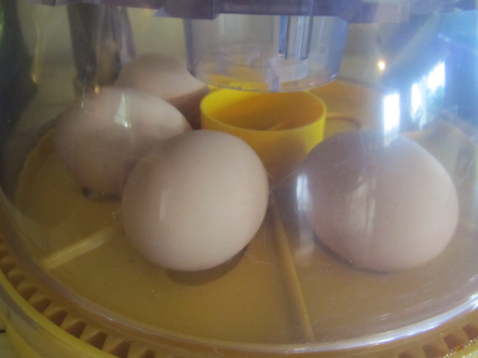 This is our first time trying to hatch our own eggs using her and an incubator. We were not really sure how with only her to get enough eggs, but thankfully for this site, we learned what to do. We keep collecting the eggs storing them in our basement( instead of eating them) and rotating them out before 7 days, so no telling how things will turn out. We only put 4 in the incubator and will probably just put 4 under her. It is hard to believe that these eggs are theirs as this is what we hatched them out in last year. My daughter did all the research and picked out Lavender Orpingtons to hatch for her 10Th birthday, so we got 7 eggs and this little mini incubator and the rest is history.