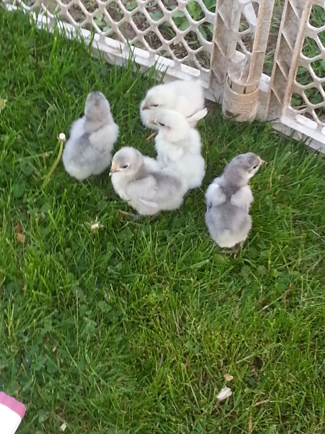 Mine probably aren't the best for showing anyway, so it'll be a while until I show them. Their beaks and legs are a bit lighter, so I need to work on that. Mine look exactly like the chick in this picture: http://farm6.static.flickr.com/5136/5489315151_12b5f46f86.jpg. I'll post an actual picture of mine tomorrow, for ya'll to critique.