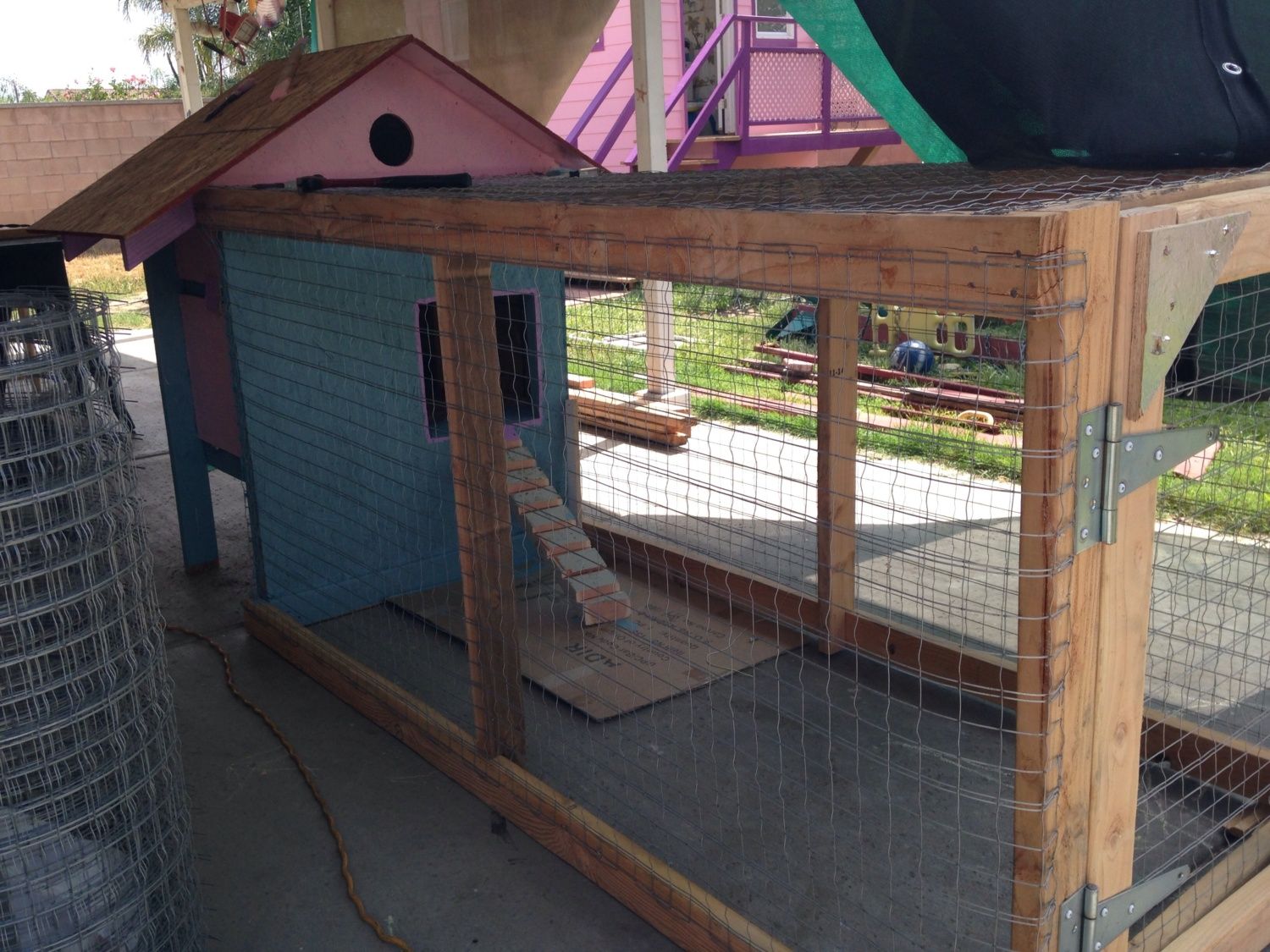 My dad used to raise chickens with his family in Mexico and he built the coop and run and told me it's perfect for them.