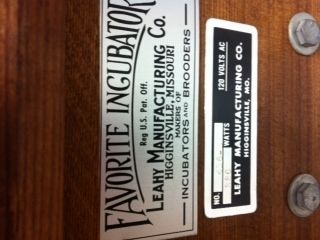 I am from William Jewell College (in Liberty MO) and we are doing a little cleaning and reorganizing. In one of our labs, I’ve discovered a Leahy “Favorite” Incubator. We no longer need this incubator, so I was doing some on-line research to see about selling the unit, but I haven't been able to find much information. The fan works when the unit is plugged in, but I haven’t tested temperature. So far I’ve been unable to locate the manual, so all the information I have is from the label on the unit (photo attached). Any thoughts on how much something like this would be worth or where I could find additional information? On a side note - I am a chicken and duck owner and use this forum often, so I'm not just some random person trying to get information