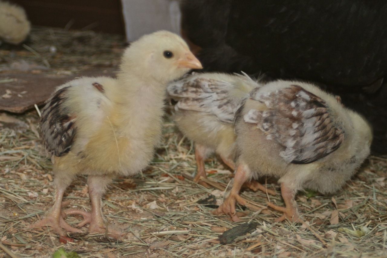 At 2-3 weeks - the Penedesencas, and the Bantam mottled cochins