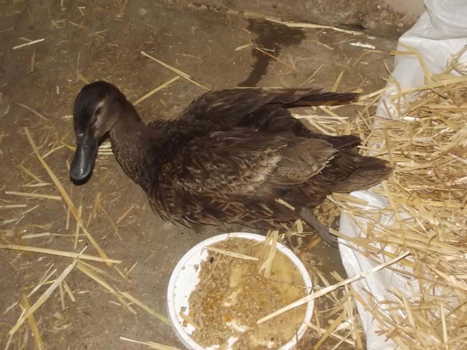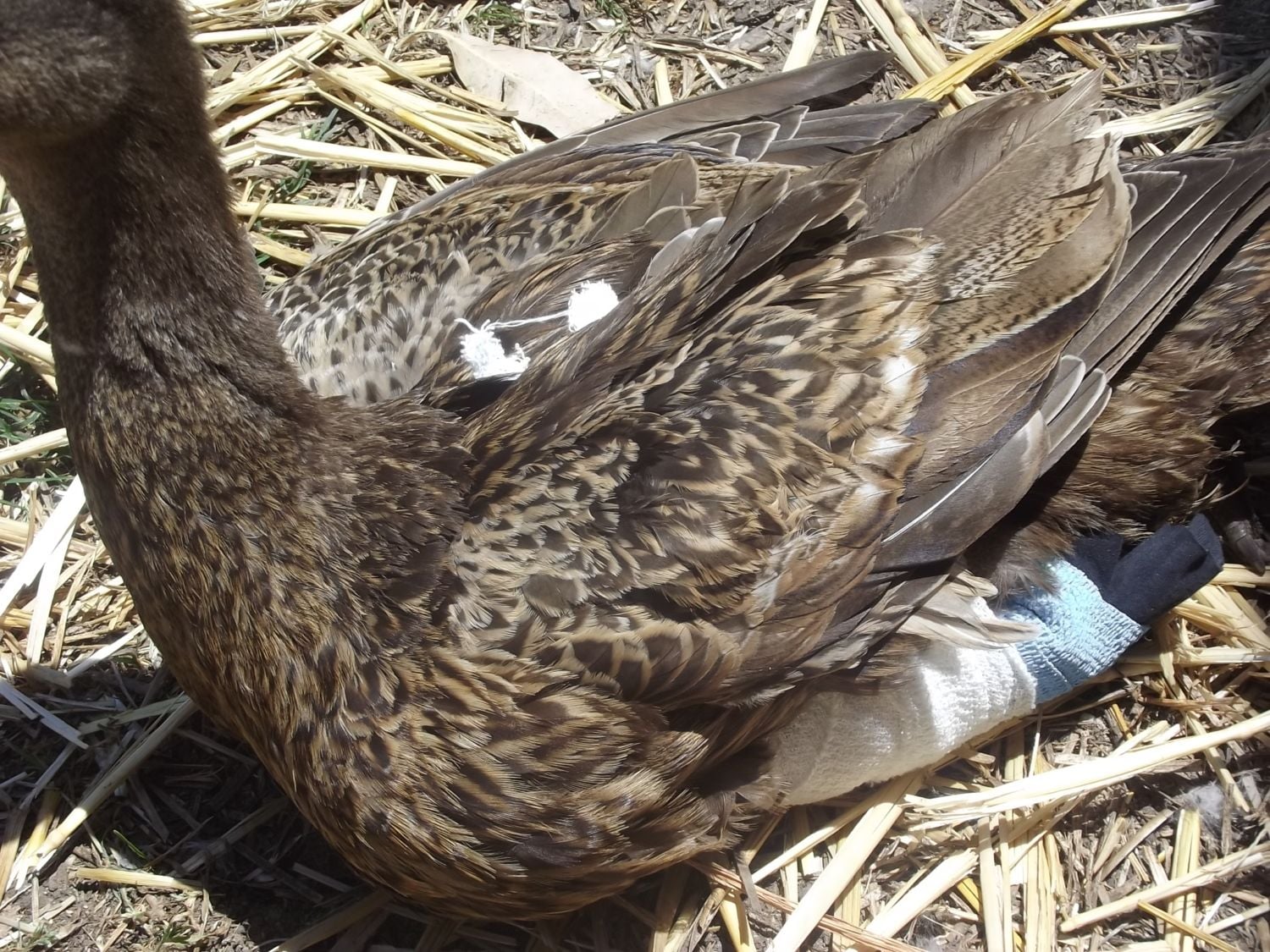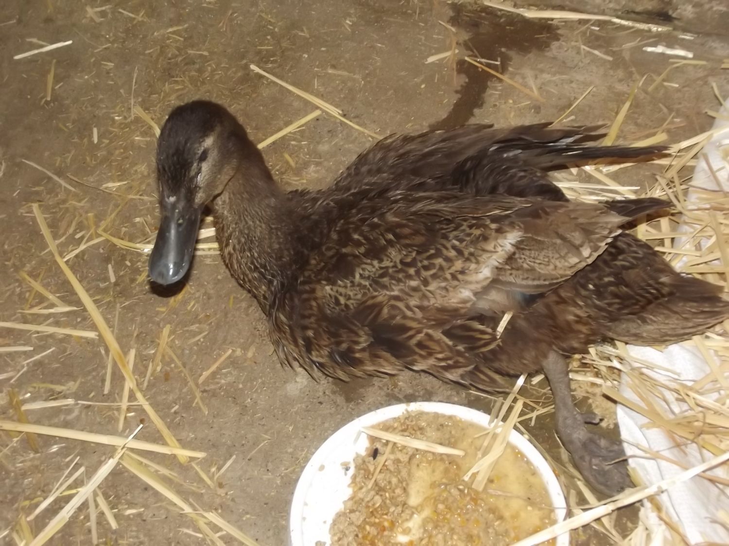 She really, really cant move now. Before she was kind of 'clawing' about, now she cant even do that but it might be a good thing. This is her sister Ephinny, who was uninjured but had severe shock the next morning. One sister dead and one disappeared! She wandered around honking doing her best goose impersonation until I put her in for visiting hours.