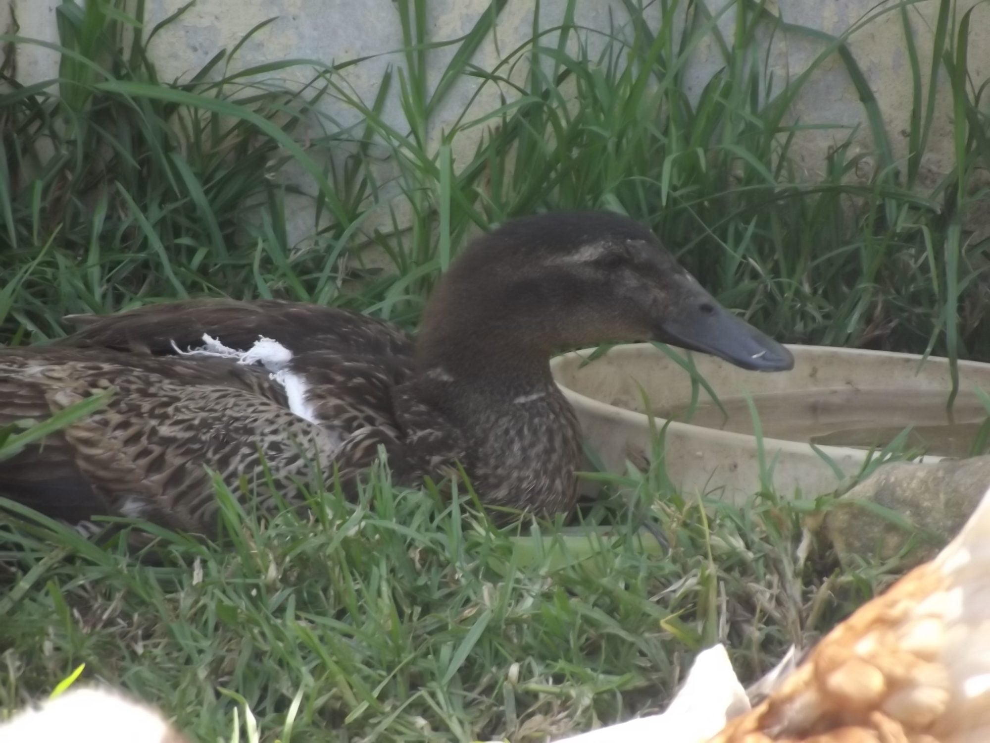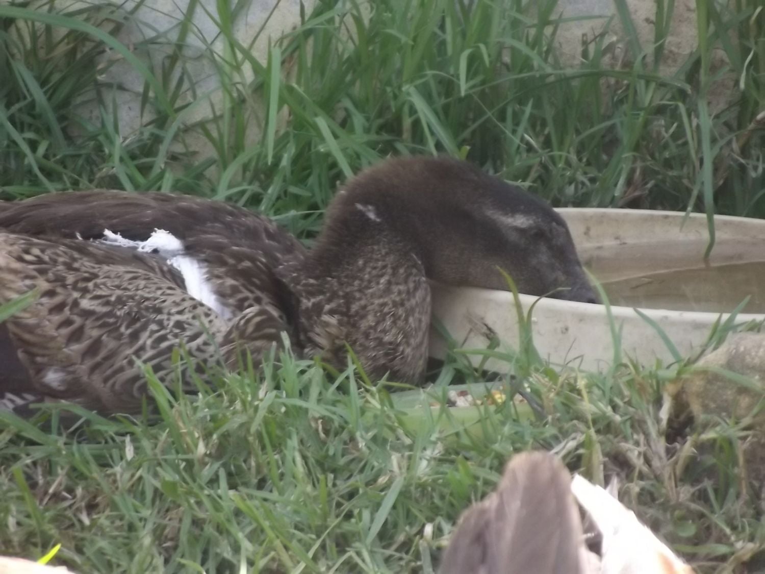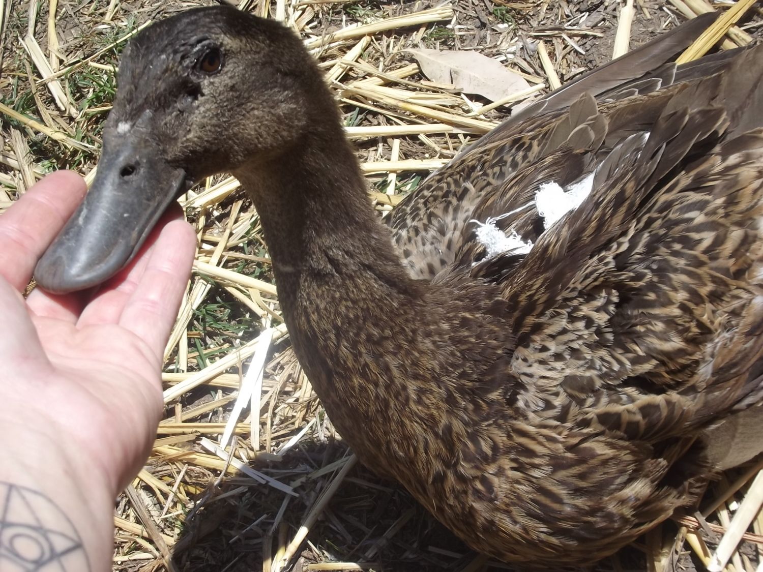 Little Stormy is recovering well but because she is little and fat she sometimes 'turtles' from her leg injury, gets flipped on her back and cant right herself. Then she sits there frowning until you come along and roll her over. I call her my little turtle duck.