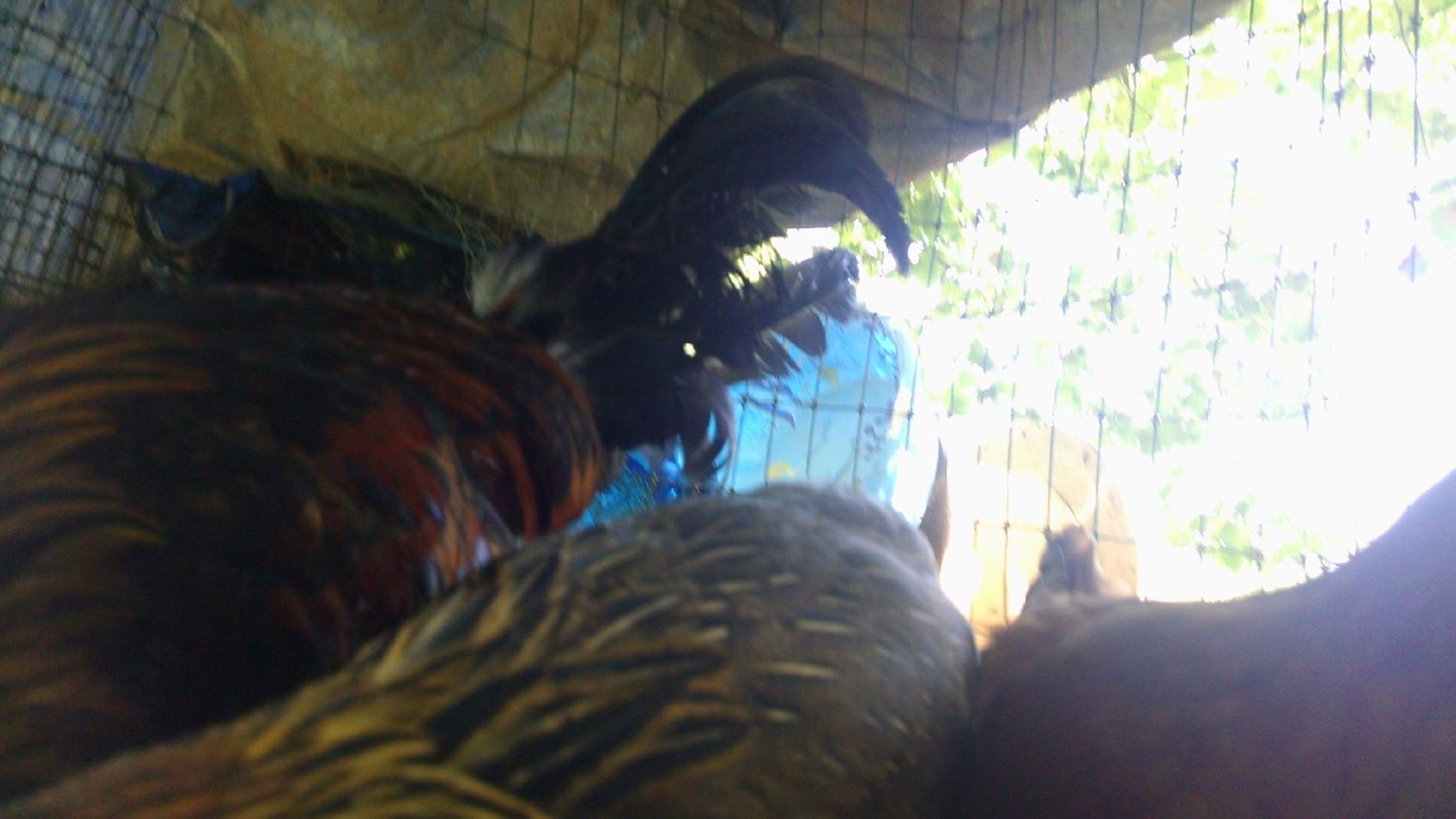 The whites in the back are a rose comb white and a single comb white leghorn. The single comb is 4 years old, maybe 5, she has big white ears. The rose comb white is a bit younger.