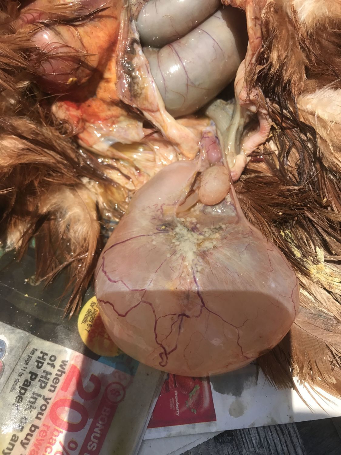 I have a 2 year old Rhode Island Red, that I suspect has Egg Yolk Peritonitis. I found a soft egg shell, like a deflated balloon, about 5 days ago in nesting box. Then, I started to see the change in her behavior. For the last few days (3-4) she has been very lethargic, having trouble getting up after being knocked down, dirty/matted butt feathers, loss of appetite, weight loss. Her poop has a pale yellow substance in it, like cooked egg yolk. There are no visible signs of trauma or injury. No other birds with these symptoms.