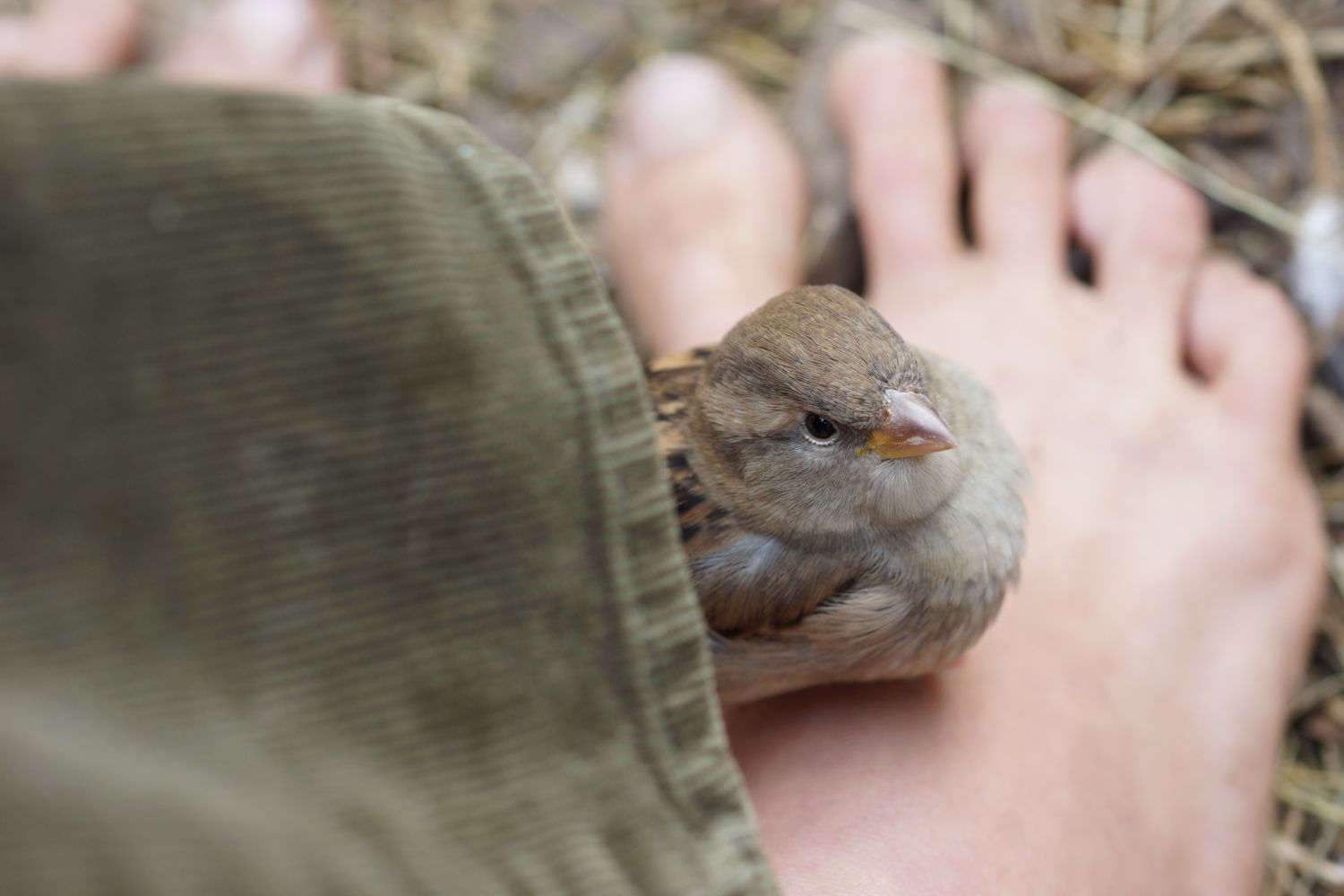 Just got these pictures of my house sparrow (named Acorn as of yesterday lol), she is acting all cute and innocent sitting on my foot. As soon as I stopped taking pictures she flew up lightning fast, bit my nose and flew away to the safety of a high perch. She is so sneaky
