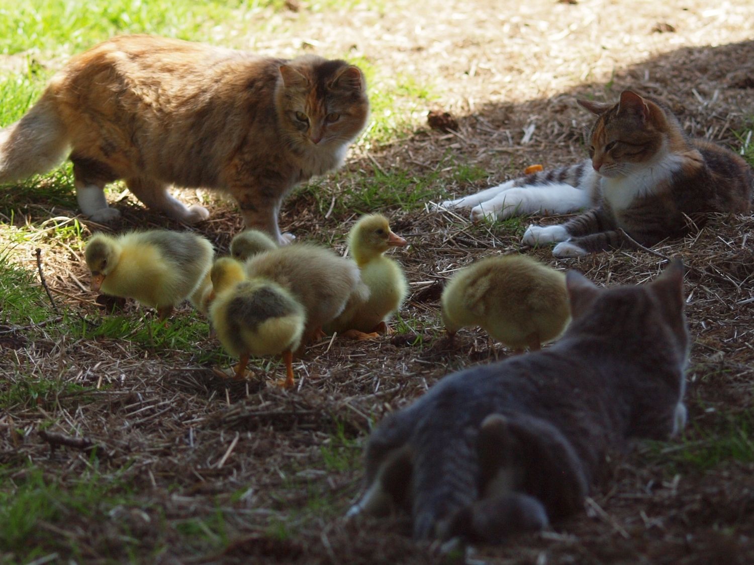 I have three goslings under a brood. Hatched over last night. They come out to see us but Mean Bird (the broody bantam) is not happy about this! Already had a cheeky cuddle with two of them.