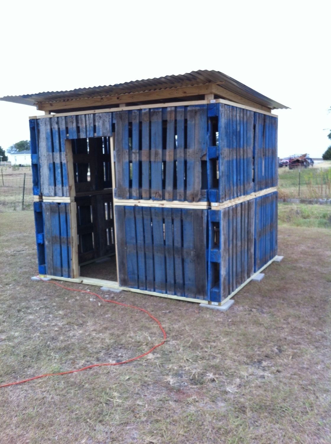 Celeise, Did you finish it? We are working on ours right now and it looks a lot like this pic of yours. I'm wondering if you covered the inside of the pallets with something. We also have a dirt floor and plan to use deep litter. I'd love to see more pics if you've made more progress!