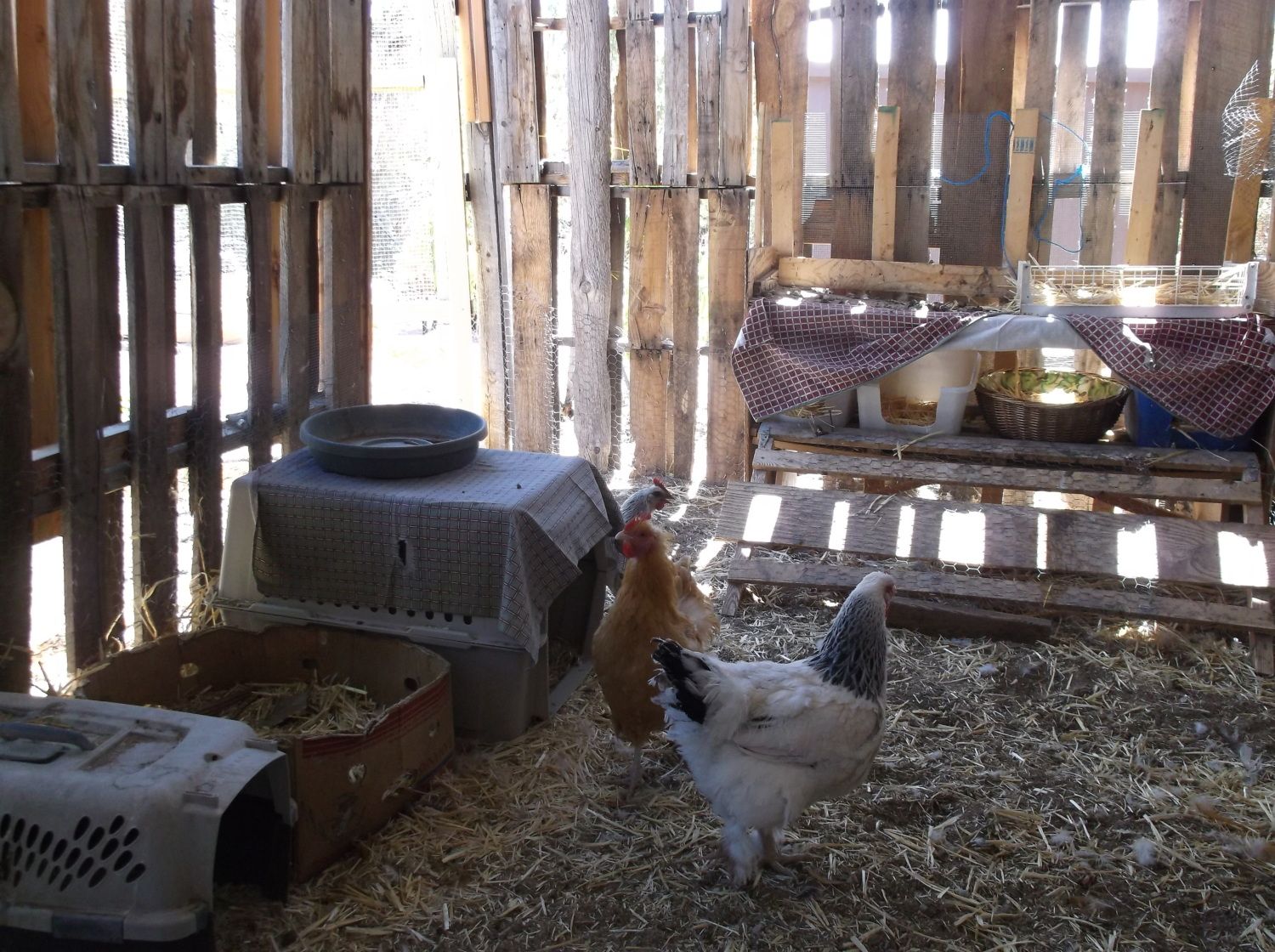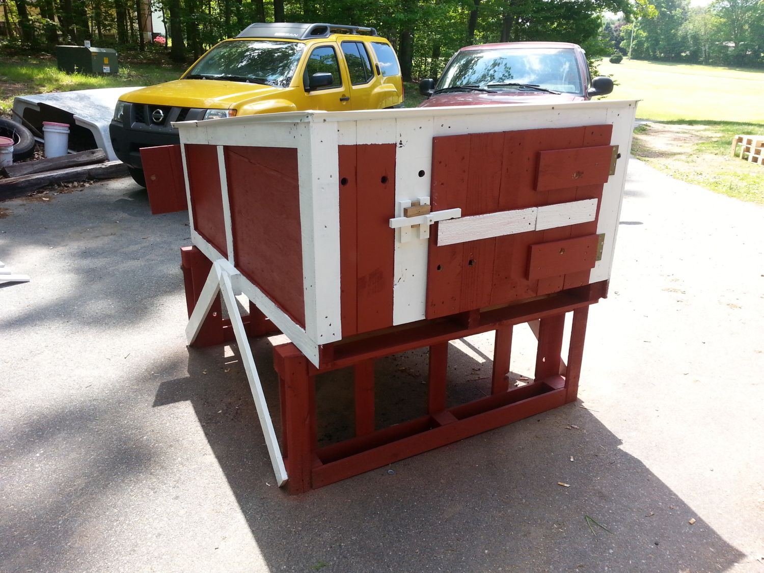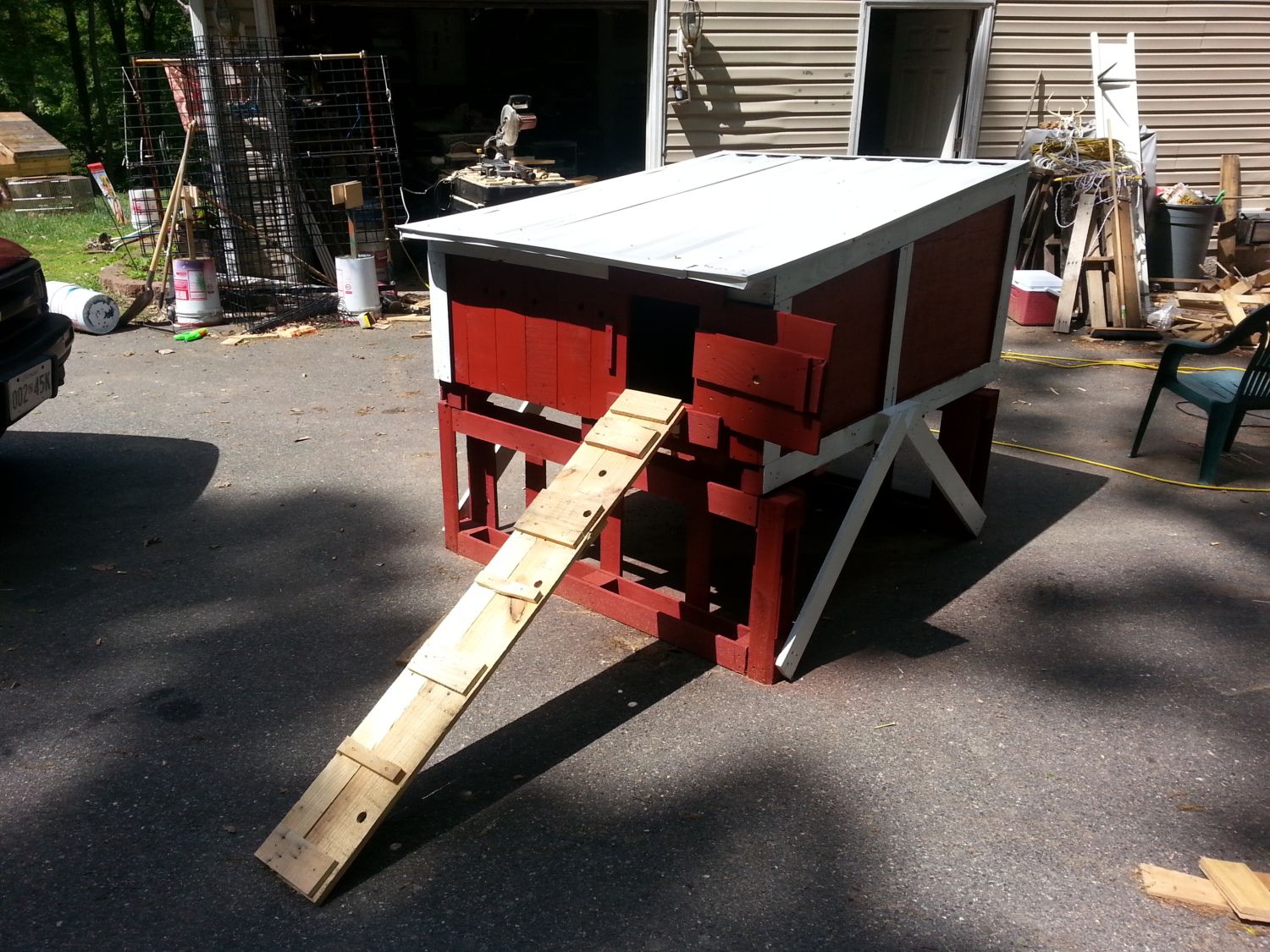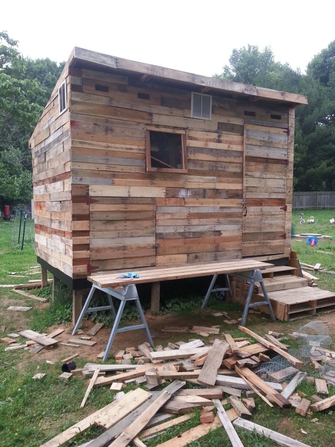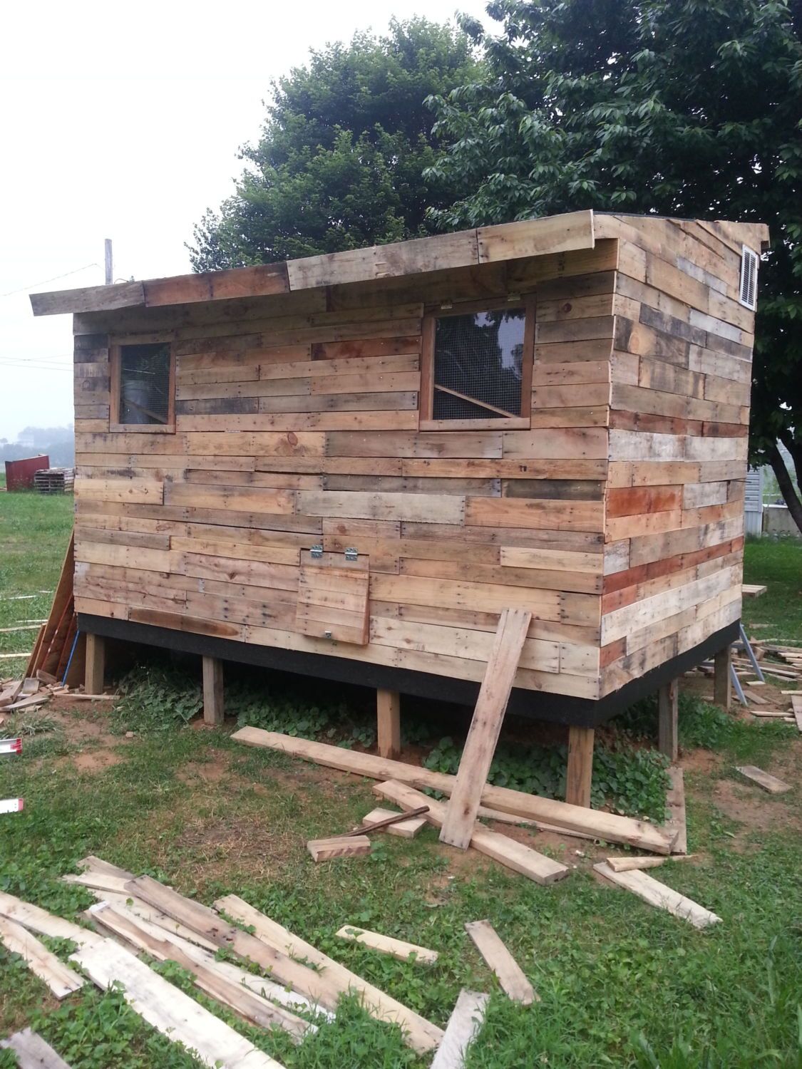We are just about finished with our pallet/recycled coop. We took each pallet apart and utilized each board instead of whole pallets. We also tore down an old shed and used some of the lumber from it as well as hardware.