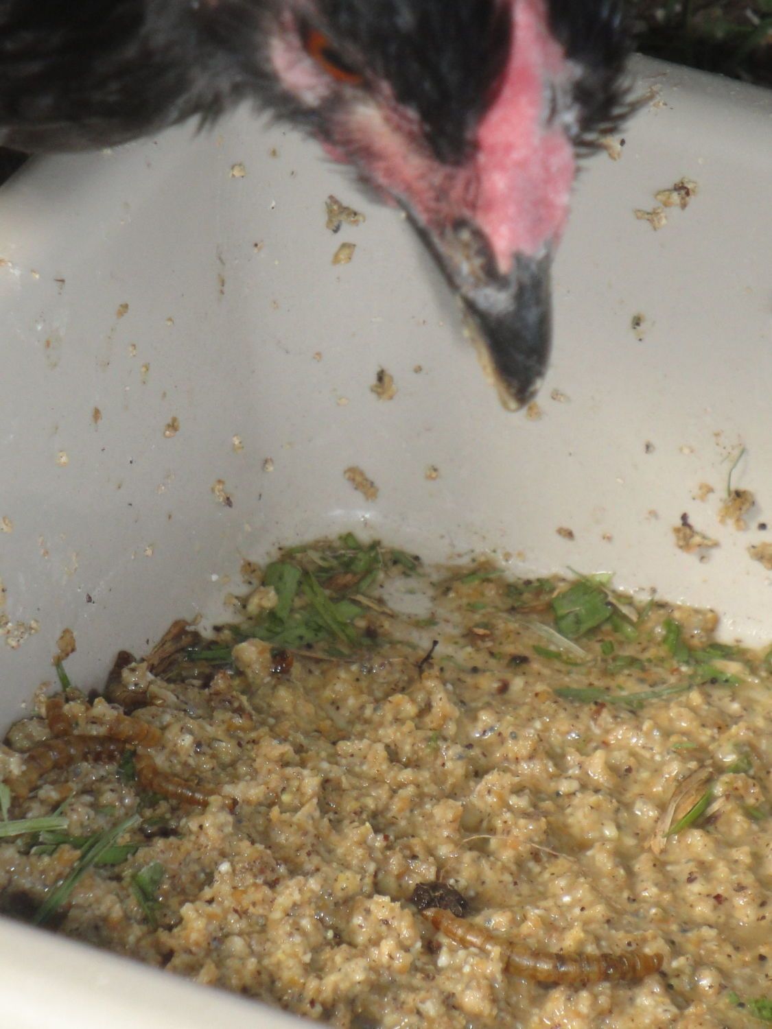 I've used those for several years, but the fermented feed gets dirty because they pullets jump into it and the hens kick dirt in as well. I also wonder if the sides are too high? I've tried using an old plate, but then the dirt gets kicked in... time to think outside the box!