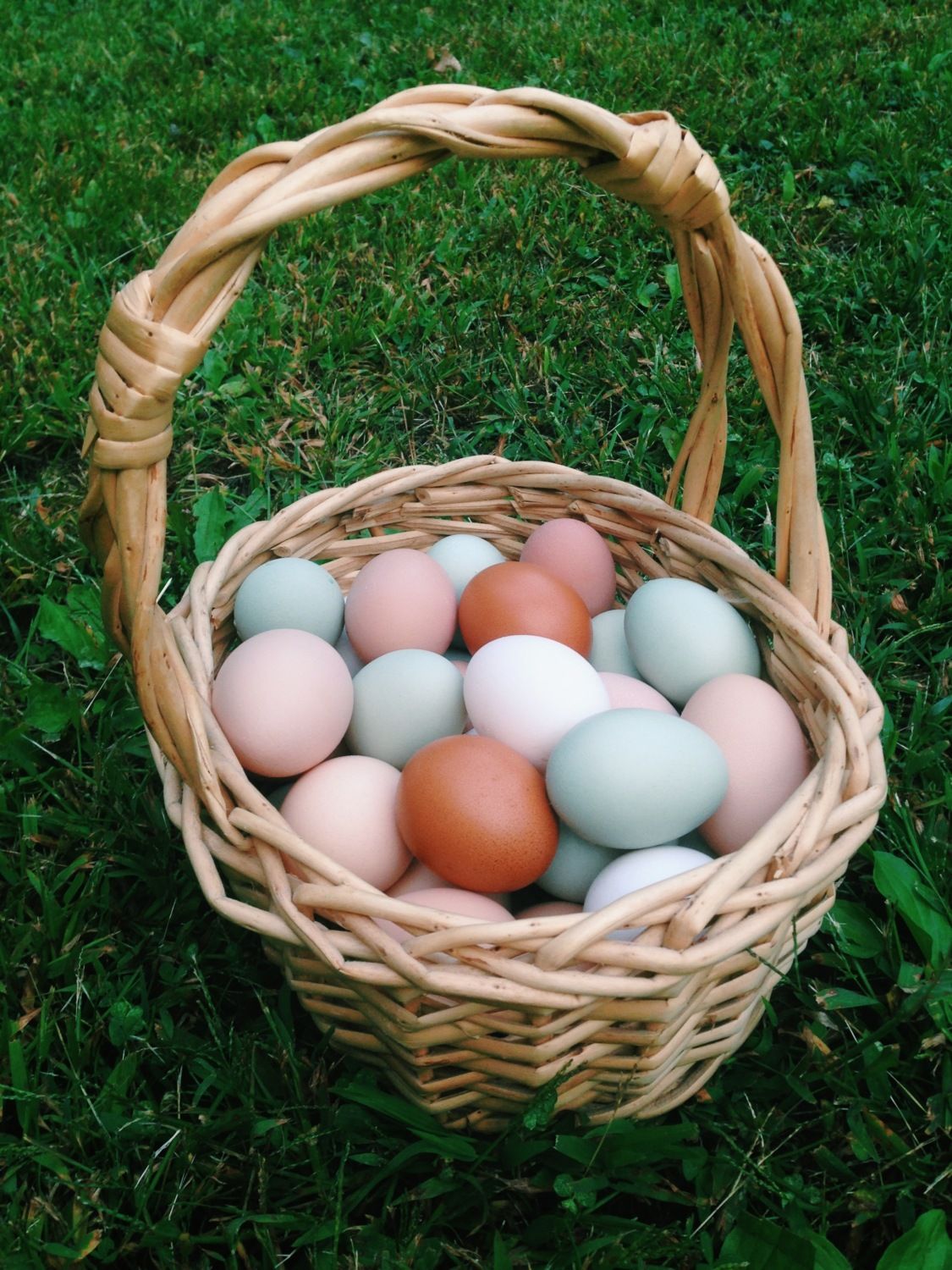 I use a 2 quart berry basket. It is plastic so easy to wash, has a handle and is the right size for my 8 hens daily production.