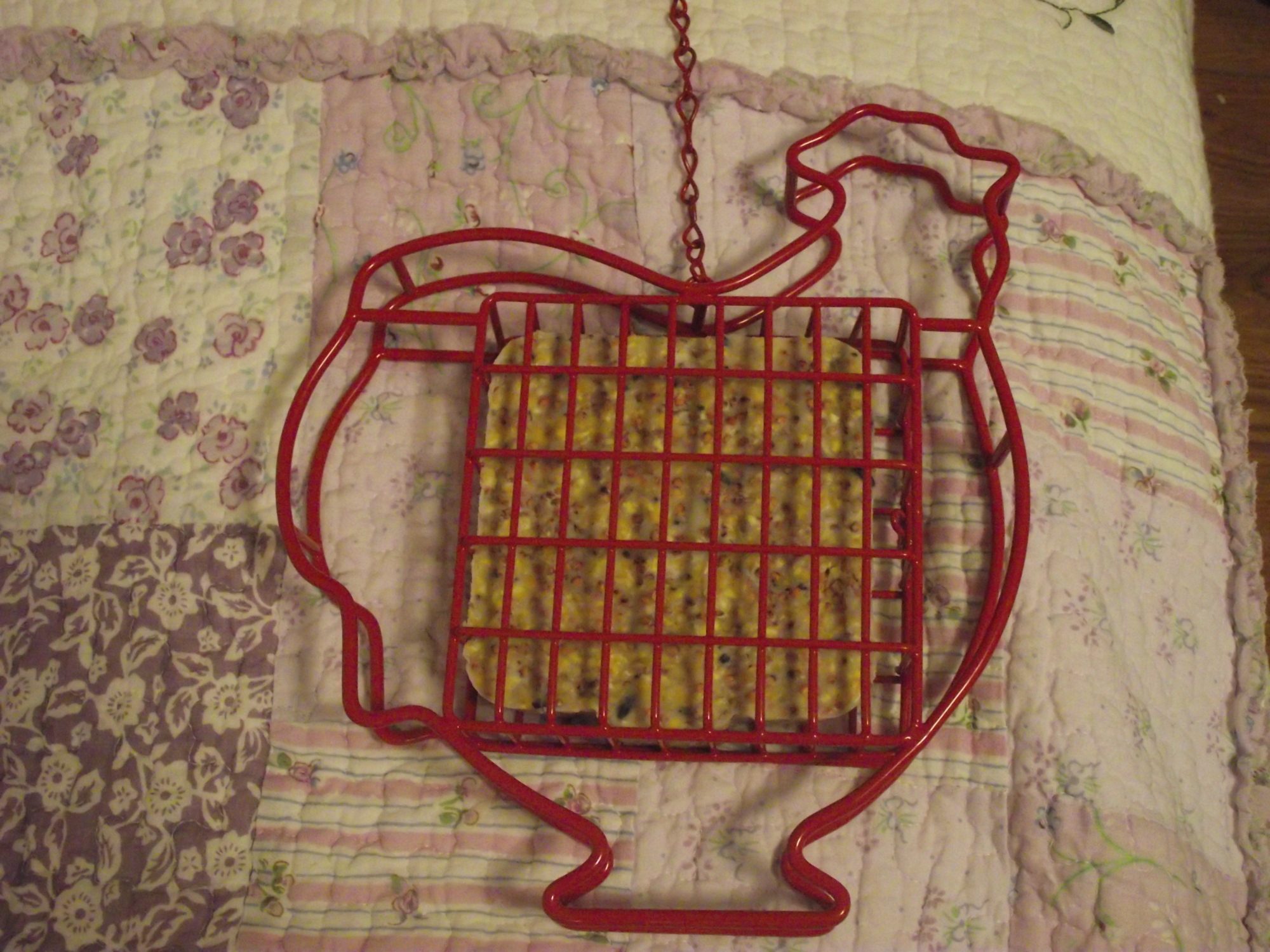 I like your suet cake feeder! You could get another one and fill it with treats for your chickens