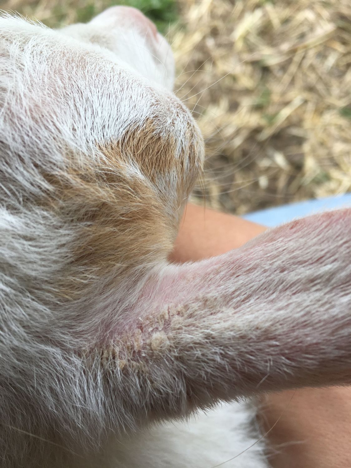 Is it possible for my light colored doeling to have sunburnt ears? She has cracked dry slightly red skin on her ears and the very top of her head. None of my other goats are exhibiting this and this is only in those places on her body....