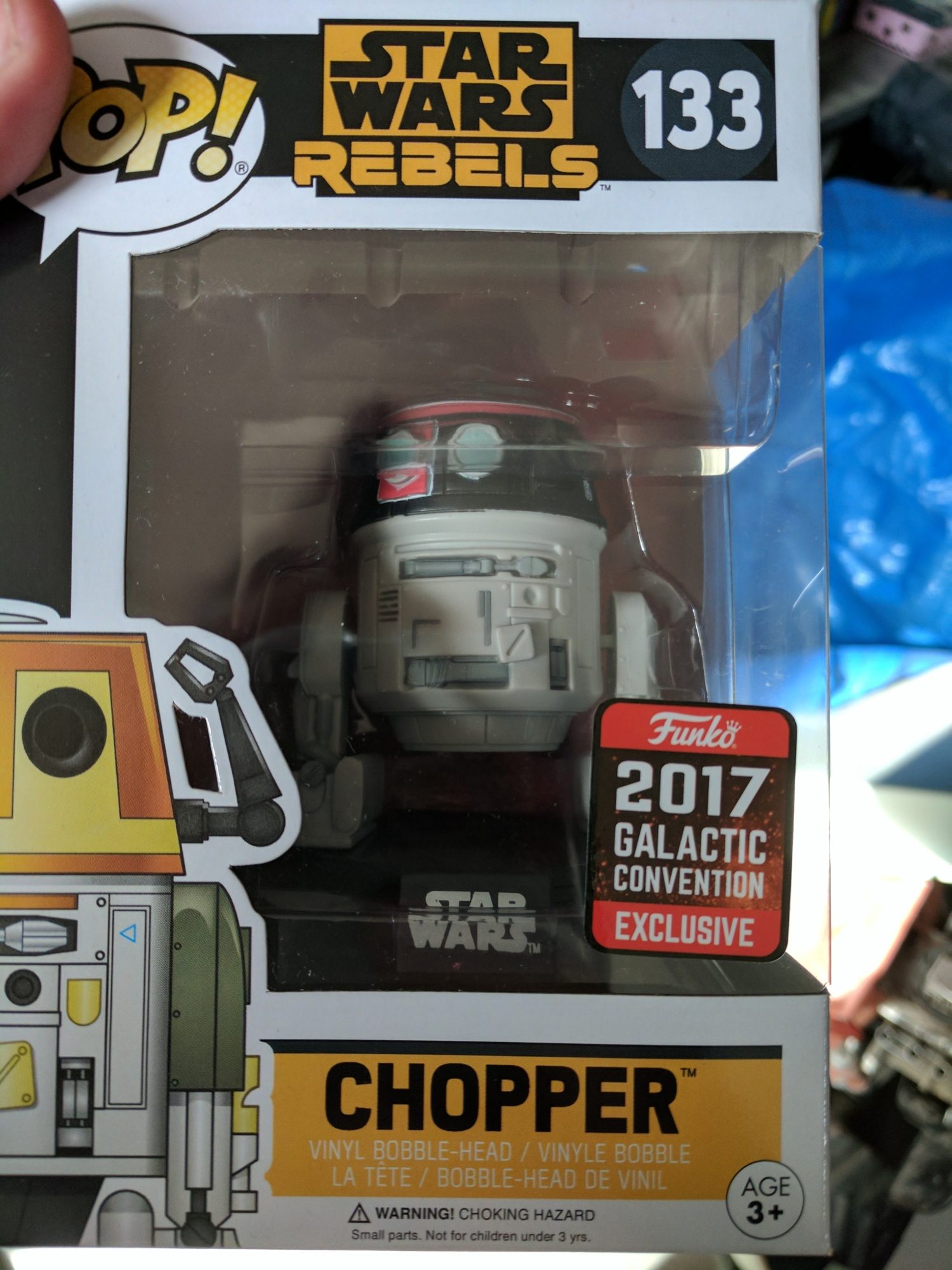 Chopper disguised in Imperial colors and Han Solo, both from Hot Topic