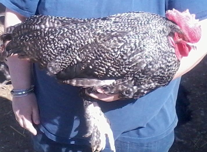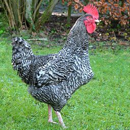 Correct Cock birds are much harder to find. (As most of us know) They should not have white in the tail but I am mainly showing these for their color especially note the Hackles and pyle, it should not be brighter than the body. The barring is sometimes wider in the white areas which will cause them to look lighter. This is not correct. The barring should be uniform throughout the entire length of the chicken. Photos taken from Feathersite, and maranklub.dk
