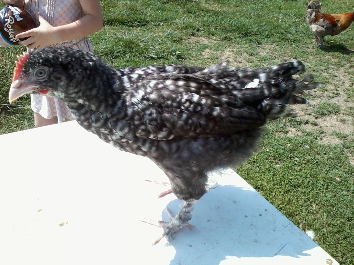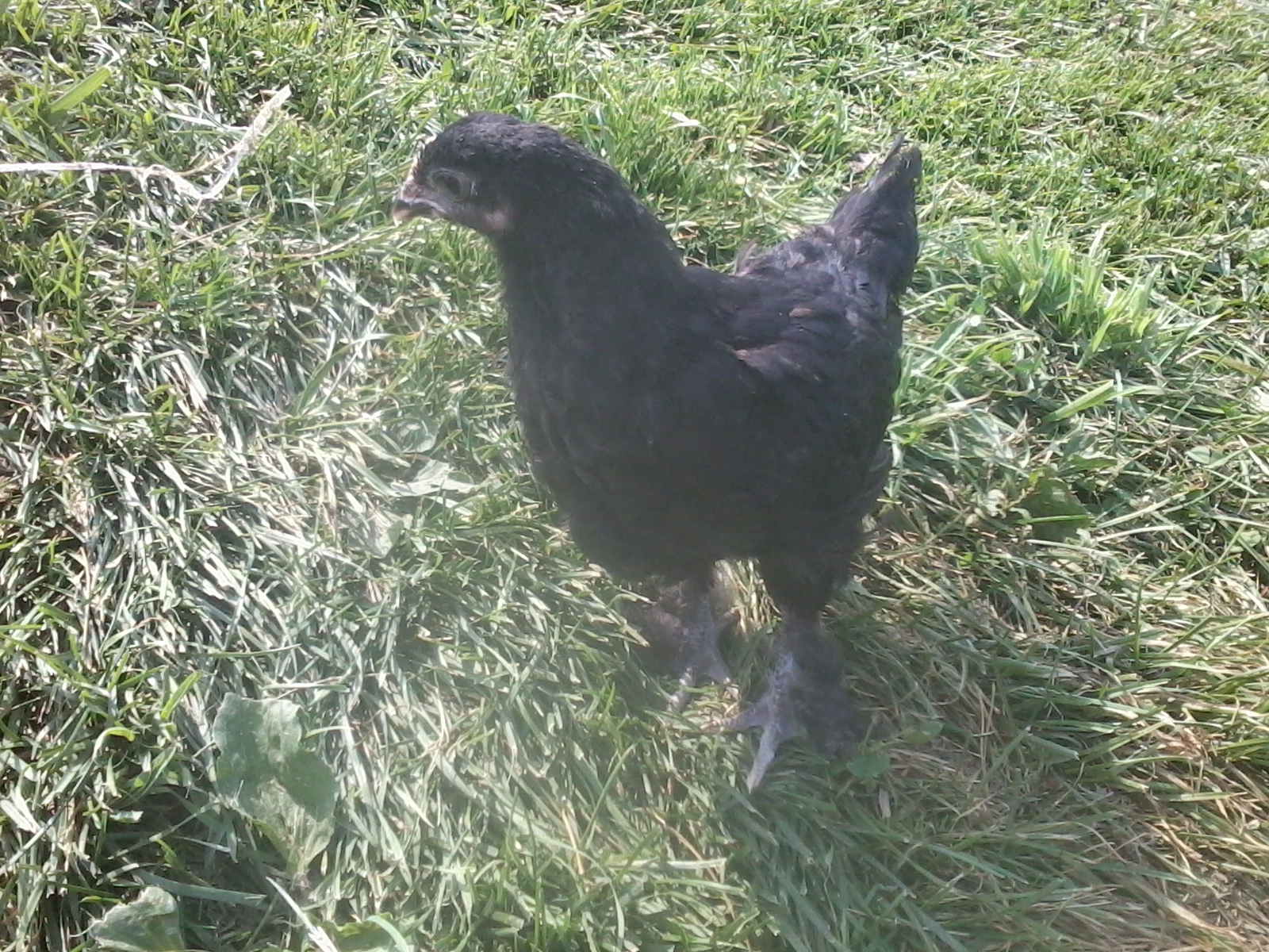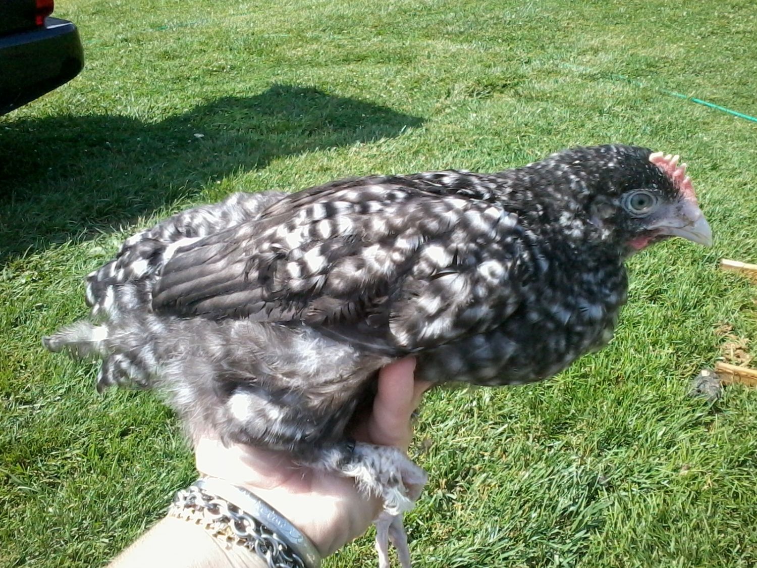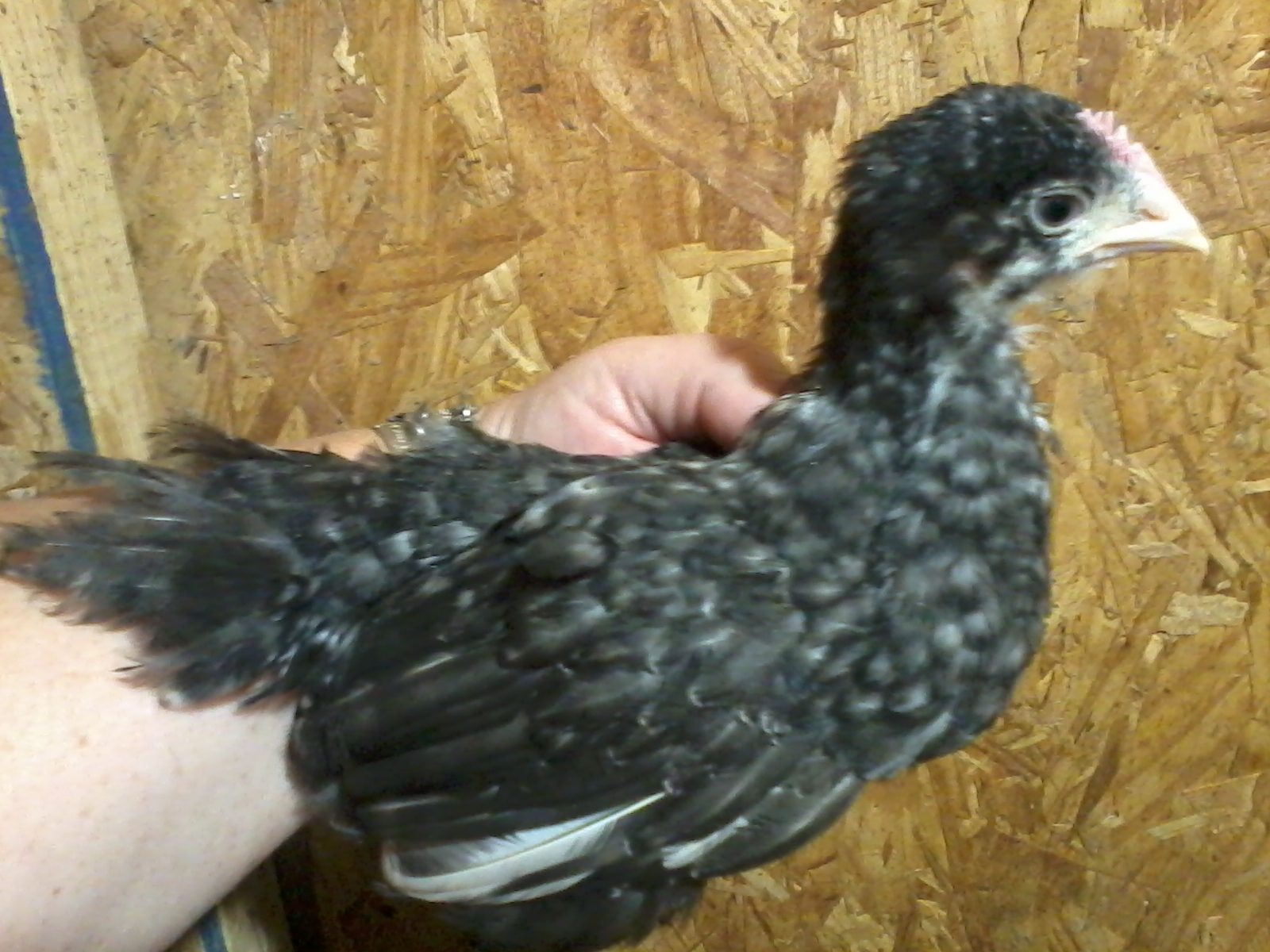 again my photos of a single bar cockerel at a few days and about 6 weeks. He is Cuckoo x Black