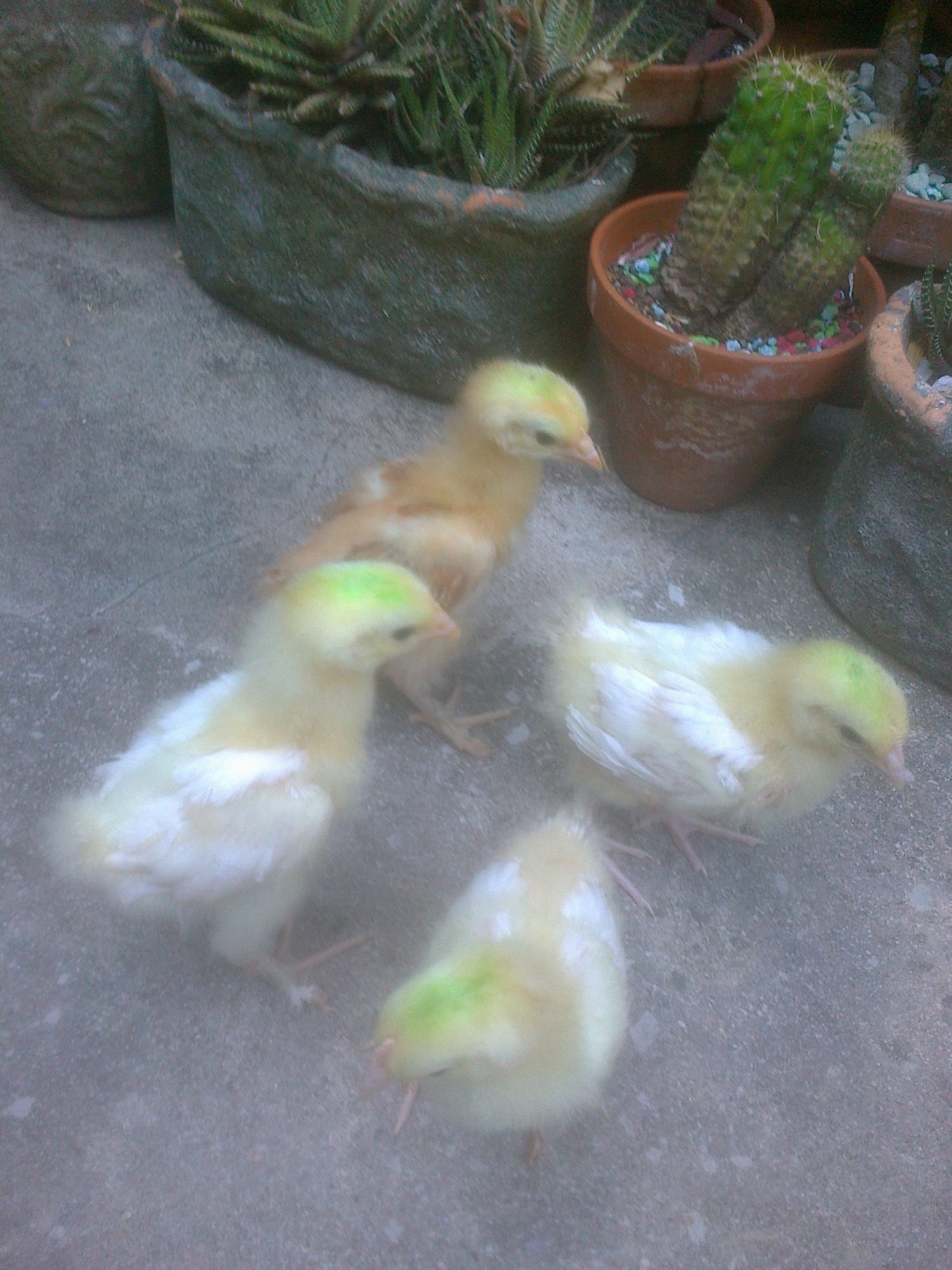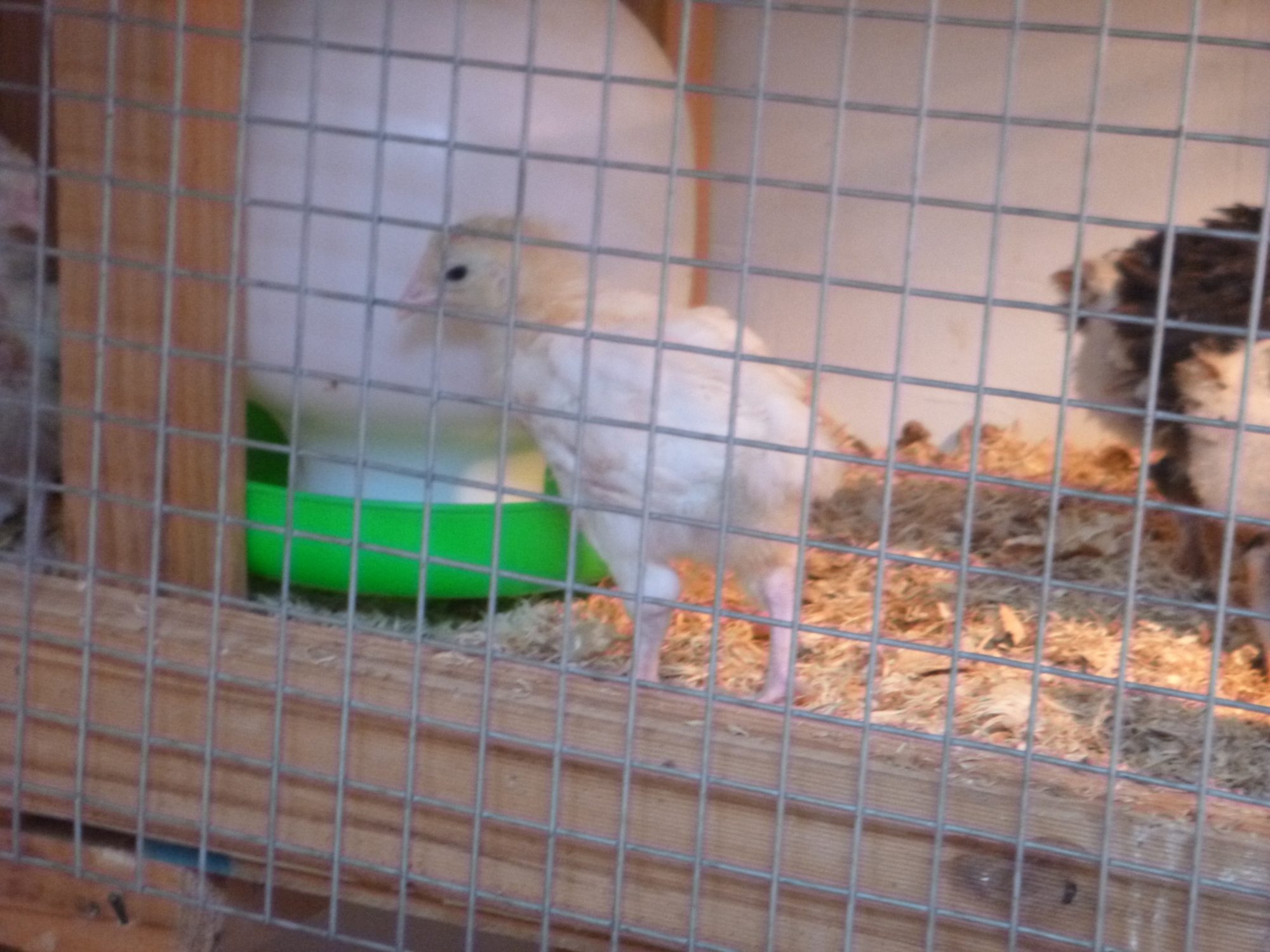 Great photos! And I love me a big ole Marans. Very nice. What's going on with the green headed chicks? Are they marked? Is it the light?Hi ,so turn up to be white chick.I like the way is feathering up nice tail.I like as well the way he/she stand up .good on you. the feet look to me a little grey or just the photo. can you please take a shot of the head ( comb) so we can see if he/she. if ll turn up he you are lucky person you can cross him with you cuckoo hen,will work very well and deed . my white strain come to me from the Black tail buff marans 4 chicks.1 is pure white pullet ( white Orchid ) 2 pullets white with red leakage and one cockerel white with straw hackel and lancets.So they are not pure White yet ( mine are recessive white )![]()