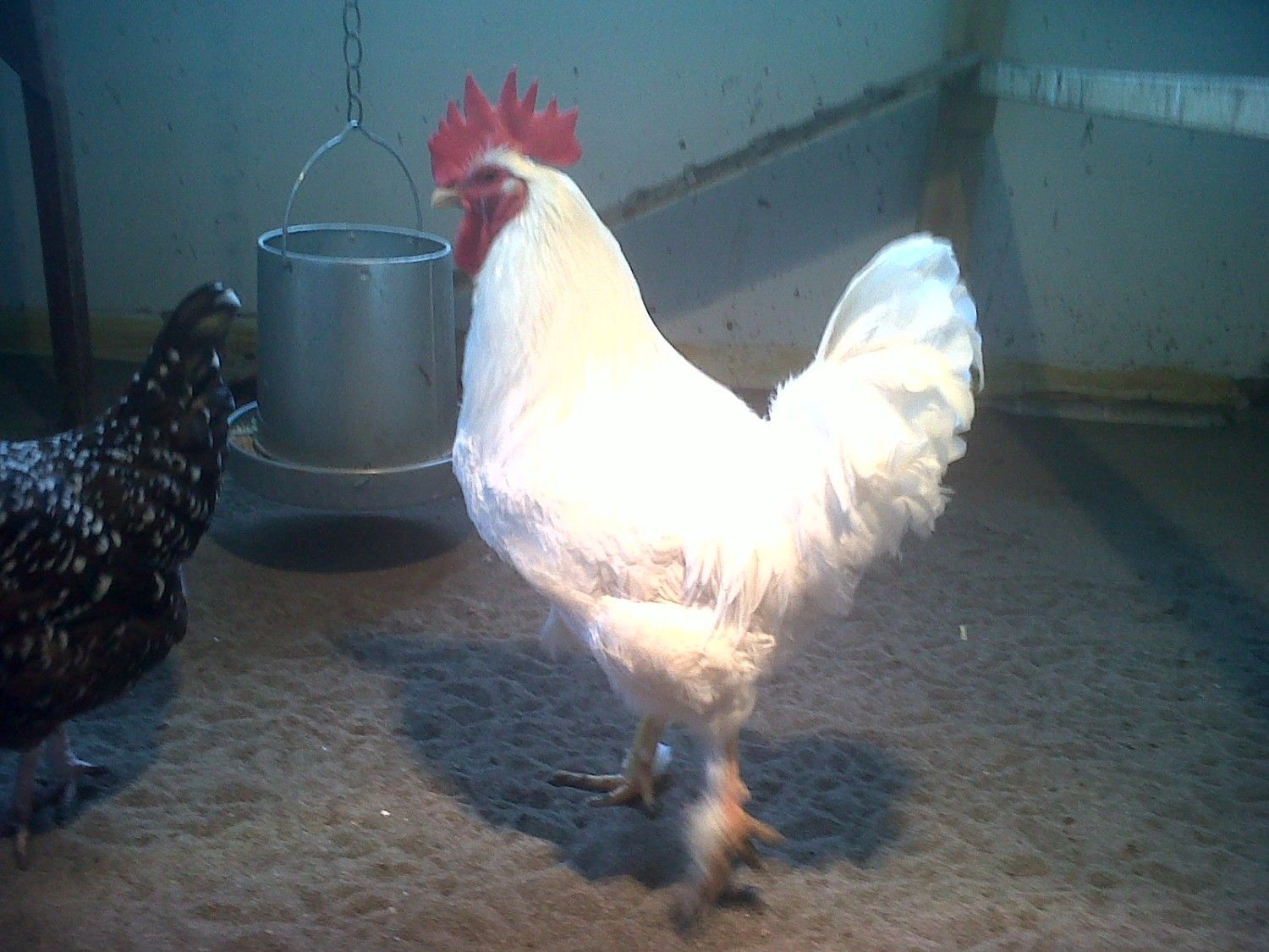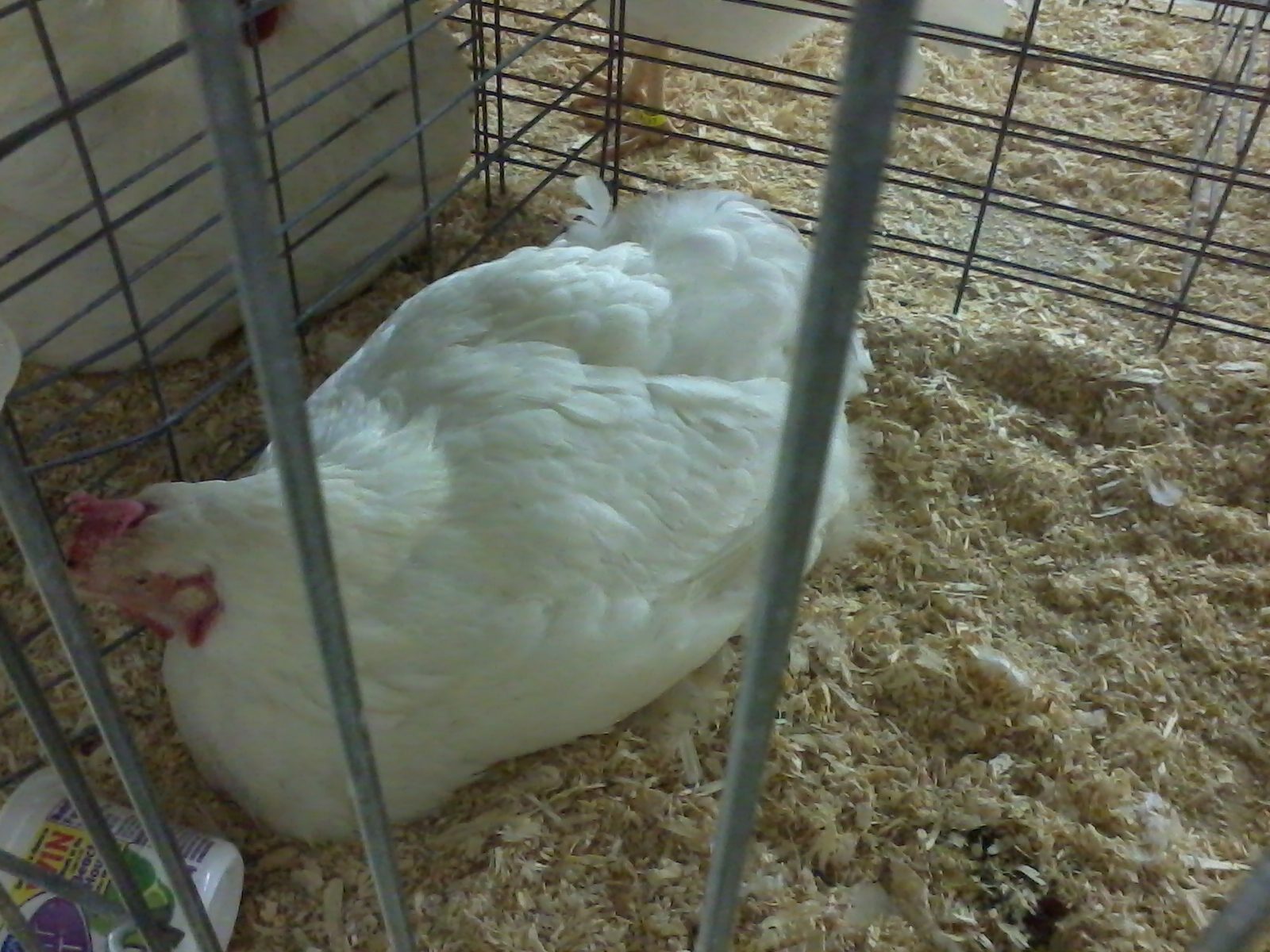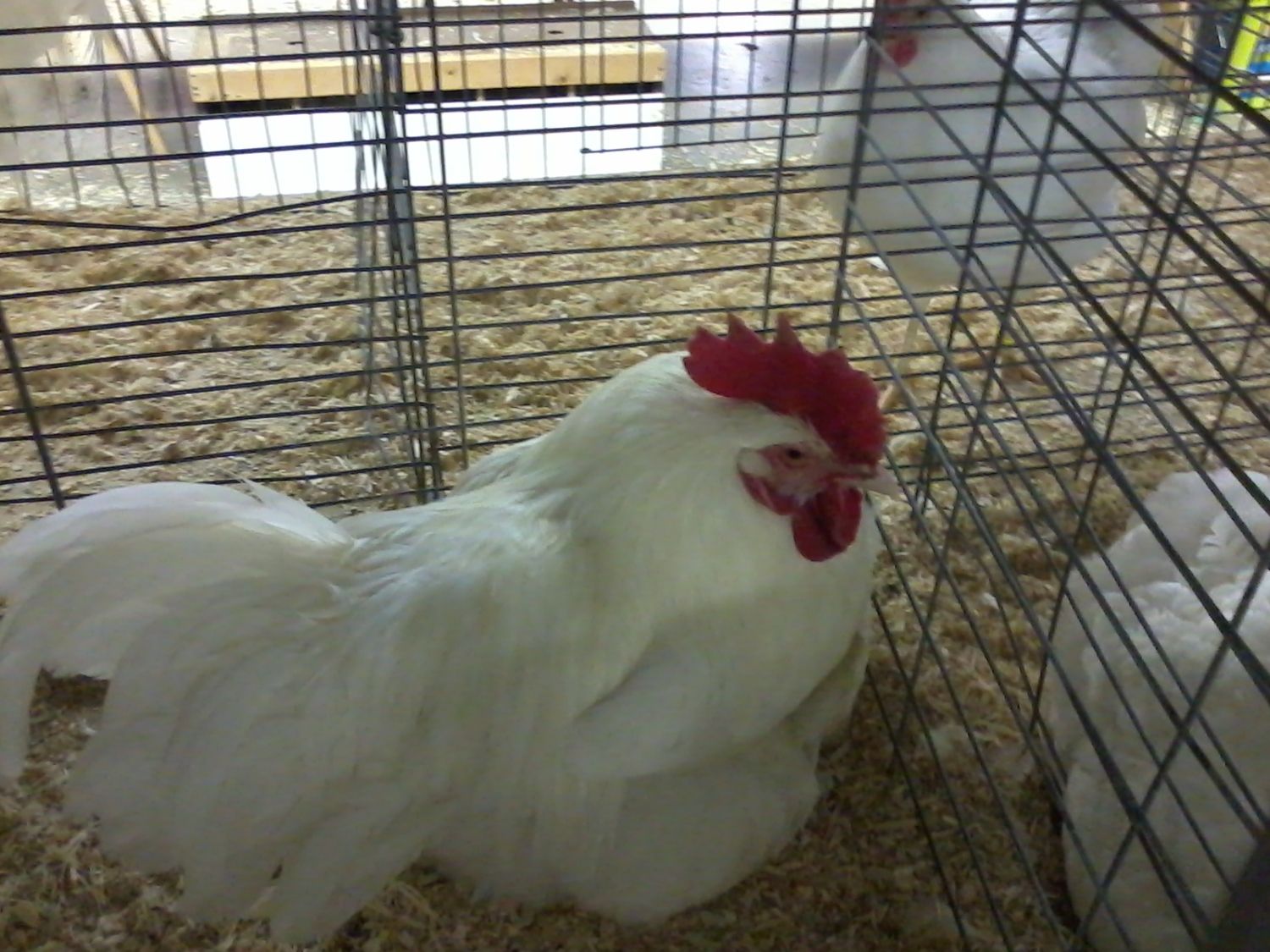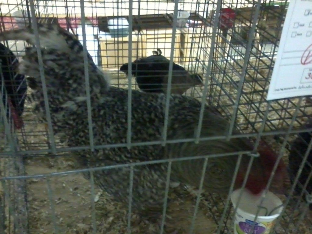 My crazy Cuckoo cockerel was shacked up with the Polish Hen thast won Best Continental at the Show, she had broken through the split cage and was laying under him. I would hate to see the product of those eggs