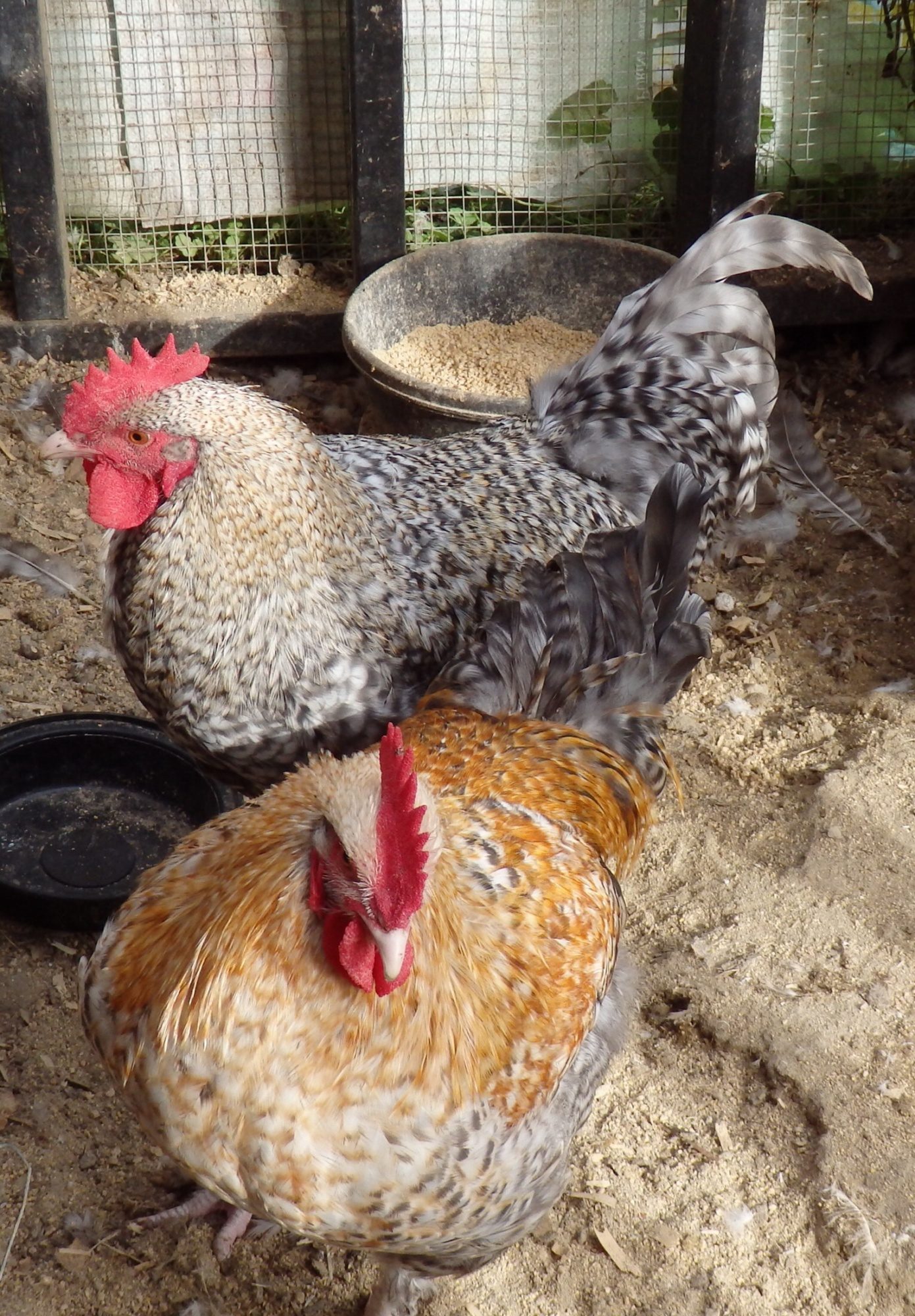 One of the reasons I was leaning toward the heavily barred guy (with less copper), is in hopes of passing the barring onto the offspring (if I ever get any hens). The one golden cuckoo hen (an older hen from another source) has a much more muted barring pattern (and no feathered legs, so I'm not using her). Is the barring passed on by the male? What should I look for regarding the cockerel's plumage, if I'll looking at keeping him?