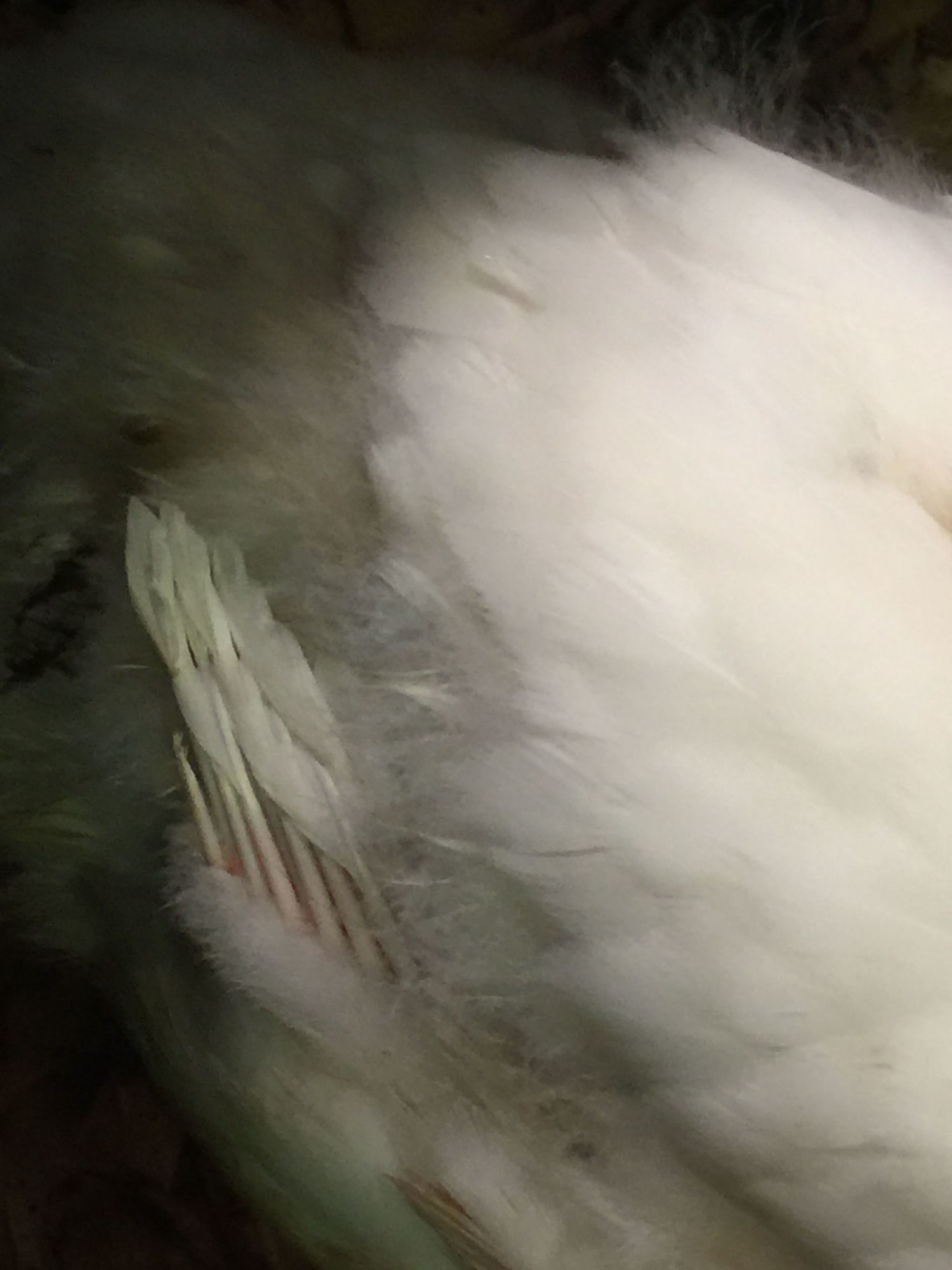 They are doing good. I'm having a hard time now telling which one the one with Wry Neck was. She has almost completely healed. Just once in a while she will have her neck sideways a little. Lucky, the one with the beak problem isn't great. She has a hard time eating since her beak doesn't pinch together at the same point. I have to have deep food for her and she digs in deep and flings it everywhere while she's trying to pop her head up and get it to go down her throat. She's now about half the size of the rest since she can't adequately feed herself. I still haven't figured out what to do with her. I'm planning on calling the vet to see if there is anything that can be done. Here is a photo of her in their outdoor cage that I keep them in during the day since it's so warm out. They prefer to be out. She looks like daffy duck with that scrunched up beak.![]()