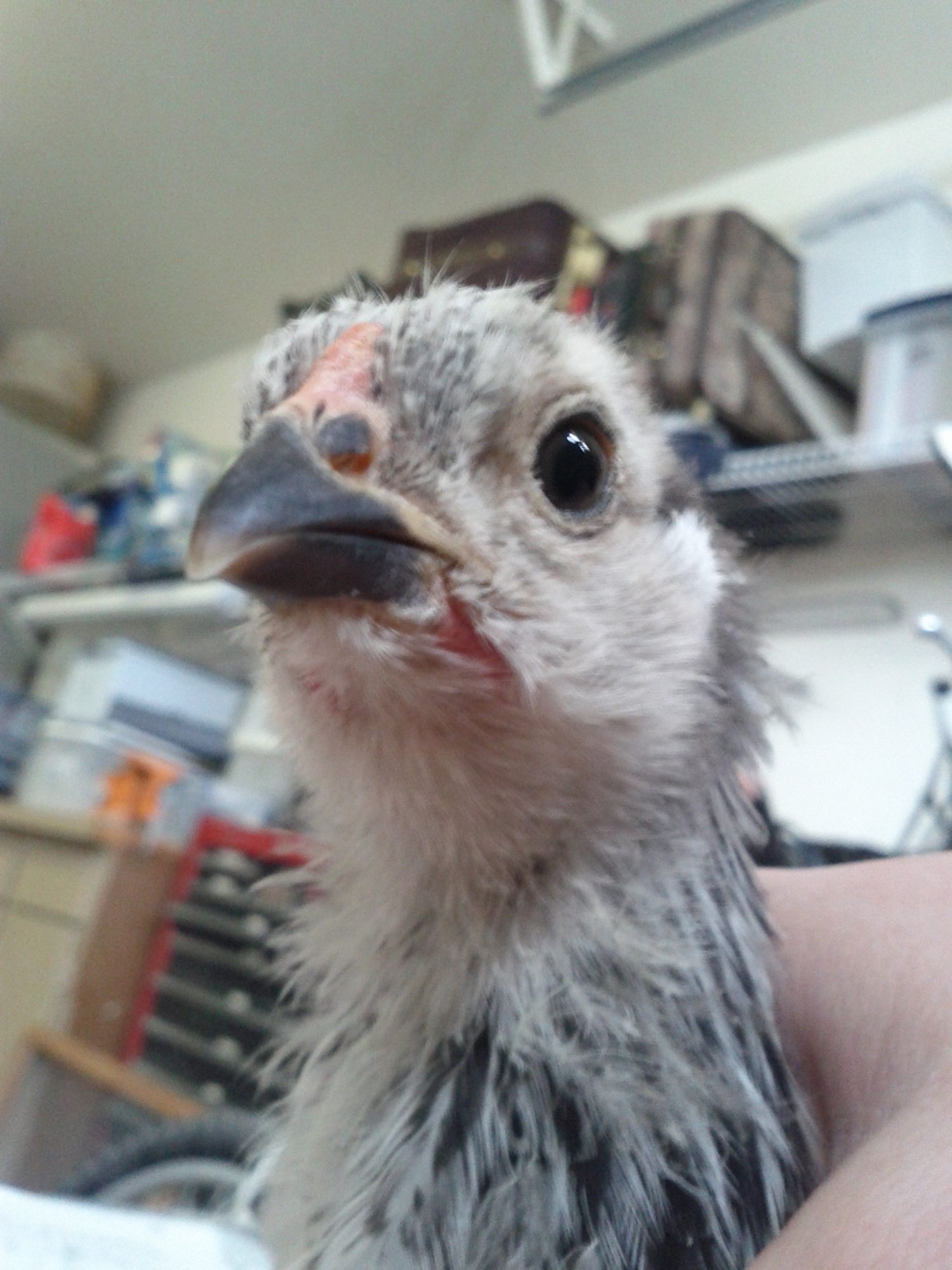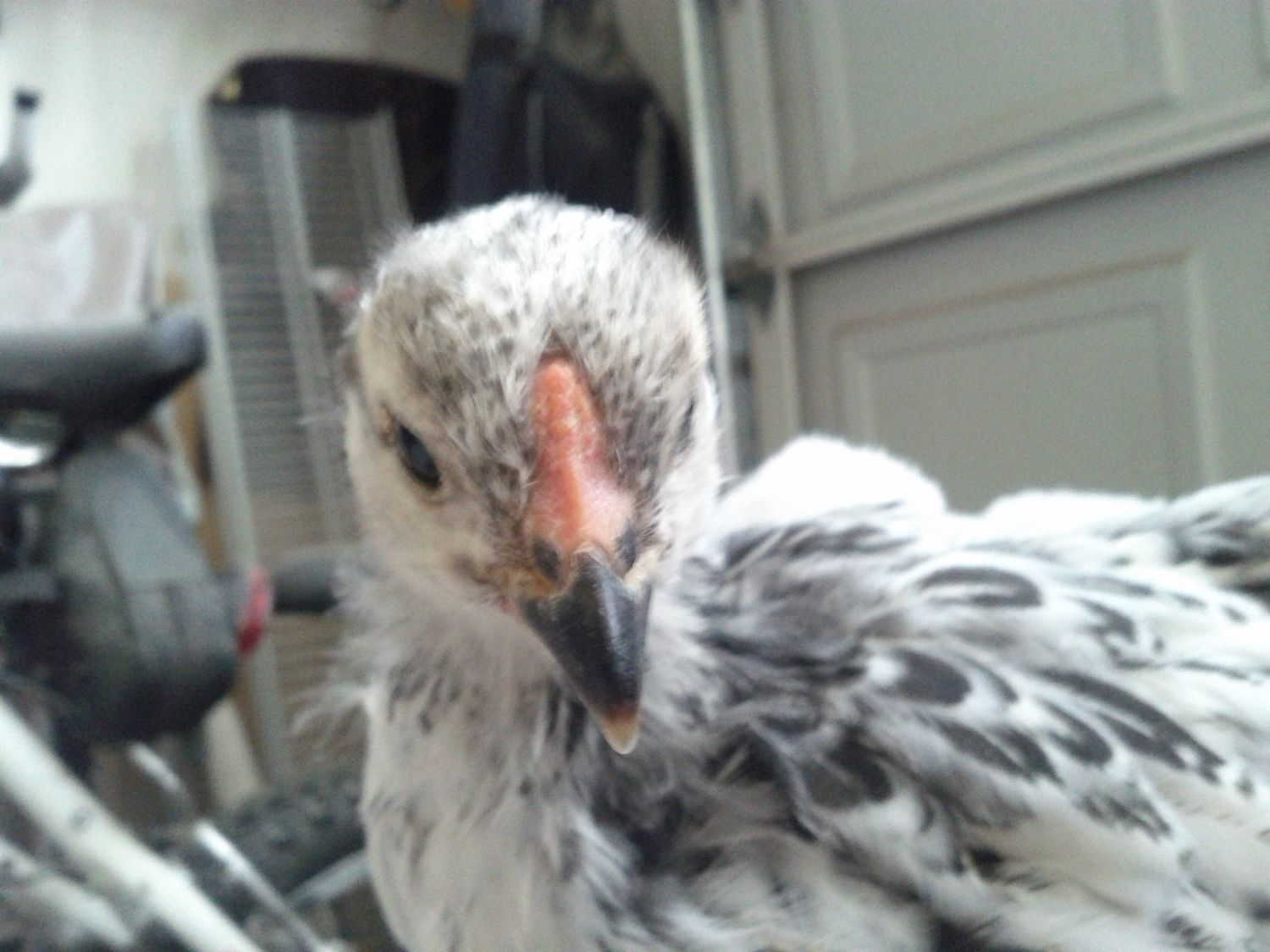 Below are two different chickens. Happy (named after Happy Feet because he/she is ALWAYS happy and curious) and Faline (from Bambi because she's so sweet and beautiful). I believe Happy is a rooster but I'm not sure what a Light Brahma would look like as a cockerel (can't find any pictures). Just is a little bigger and has a redder comb with a dif back tail than the others. They are about 5 weeks old now. Also I was wondering how do you know if your chicken is "show quality"? Thank you :]