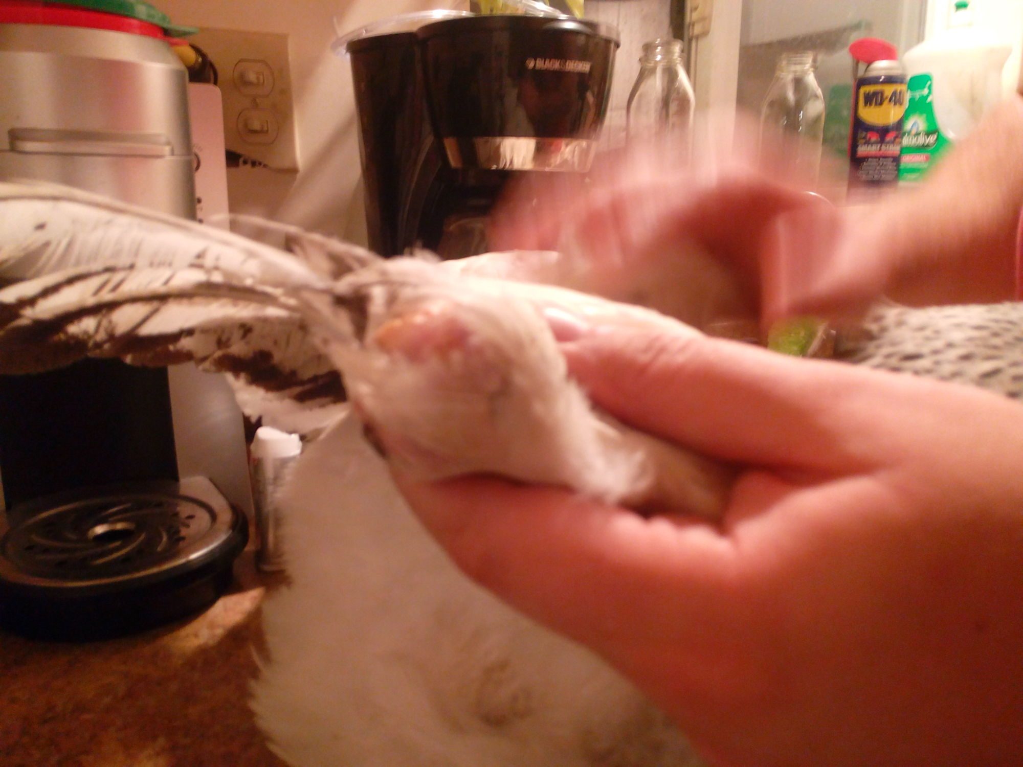 Just today, my boyfriend found a large bulbous mass on her right wing after giving her a warm bath. This was not noticeable at first, but when you left up her wing, it's obviously there. It feels very hard but bulbous and as if there is some liquid in there. Here is a picture: