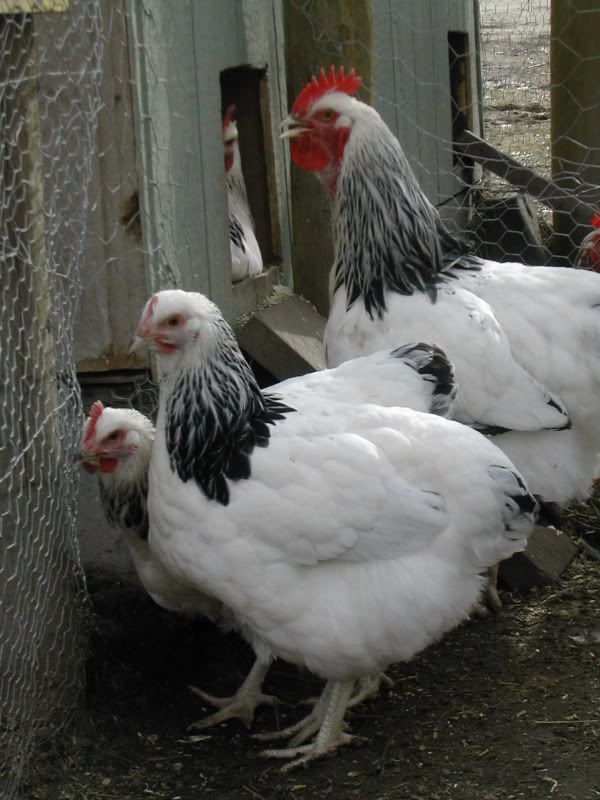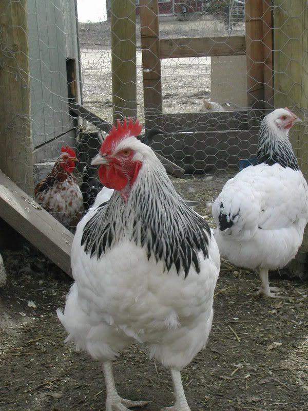 My roosters are HUGE (Standard) Light Sussex and two Light Sussex hens. I purchased these directly from Paul Bradshaw of Green Fire Farms this fall. These are NOT HATCHERY birds but Australian import lines. These are very friendly, hardy birds that are great layers of brown eggs.