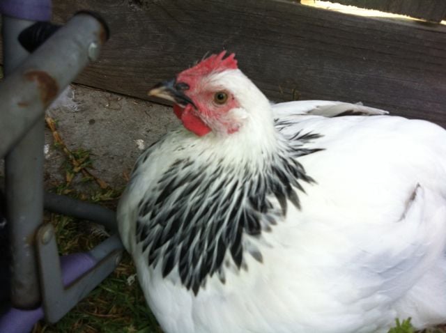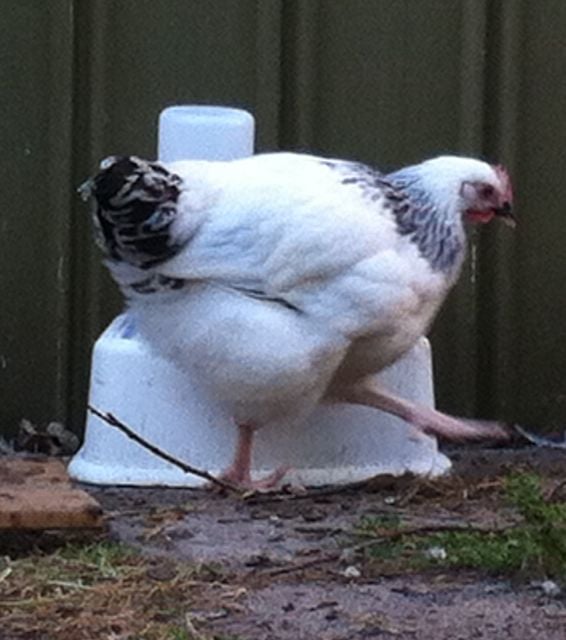 OK, so now I'm very confused about this chook, so I'm re-posting to the Light Sussex thread to get some input from even more experts! I've heard they are hard to sex until much older. What are the chances this is an early-developing female???