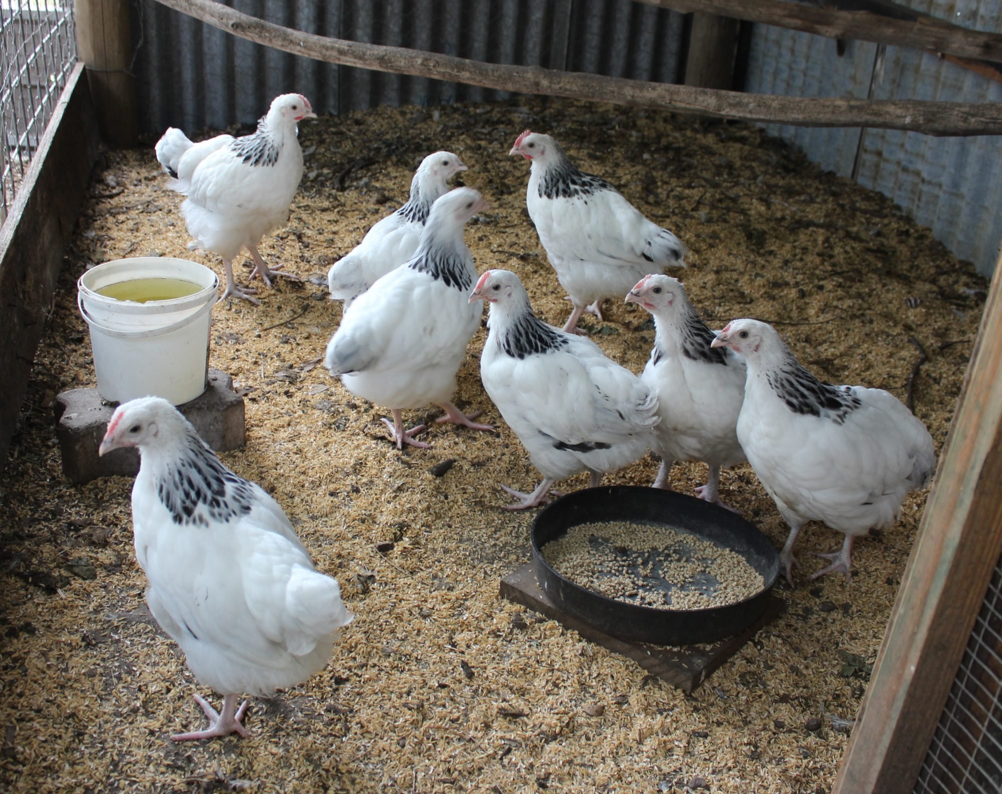 My new ""Show Quality"" Light Sussex hatched 26/11 are growing fast.