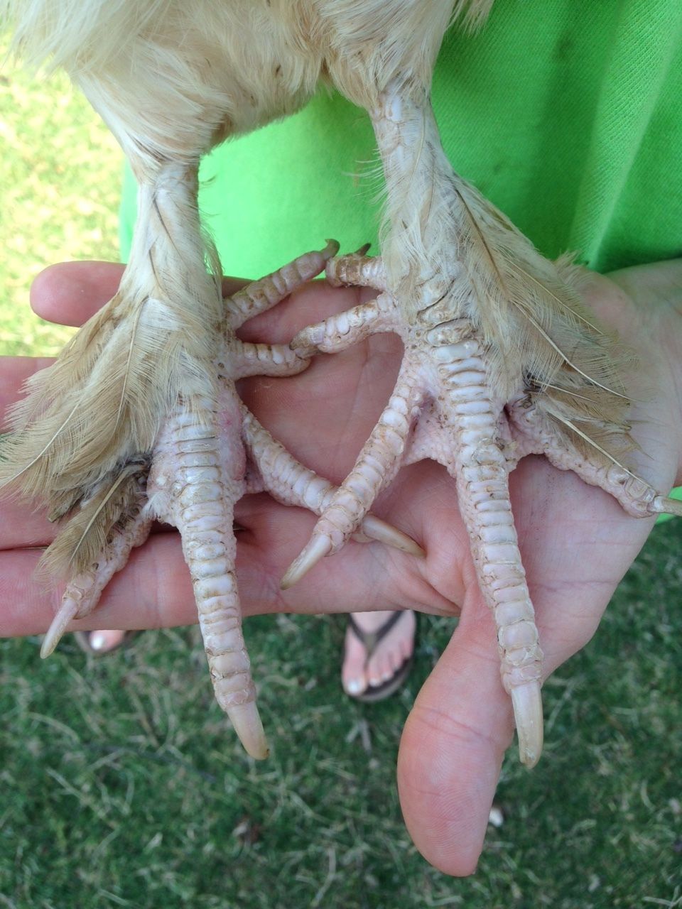 Hello, I just noticed our Salmon Faverolle hen is limping. She has been wanting to hang out in the nesting box all day. Her right foot in the middle toe area is swollen and red. She is a year and 2 months old. Here are some pictures. Any idea or advice on what is causing her discomfort and how to treat? Thank you so much!