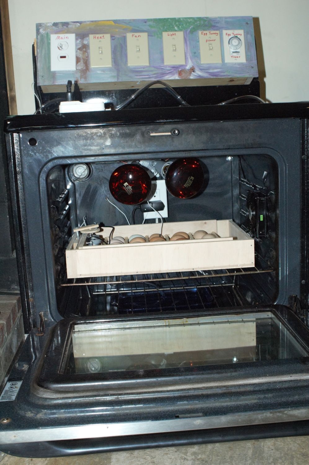 So, we decided to move up from having adult chickens to raising them from chicks...mail order. After researching how to set up for the new chicks we kept coming across hatching chicks from eggs. What can I say? We got sucked in! We purchased the eggs from a local source. All we needed now was an incubator. We could build one, or hey, lets do something with that old range/oven that's been sitting outside since we started renovating the kitchen. Here is how it went...