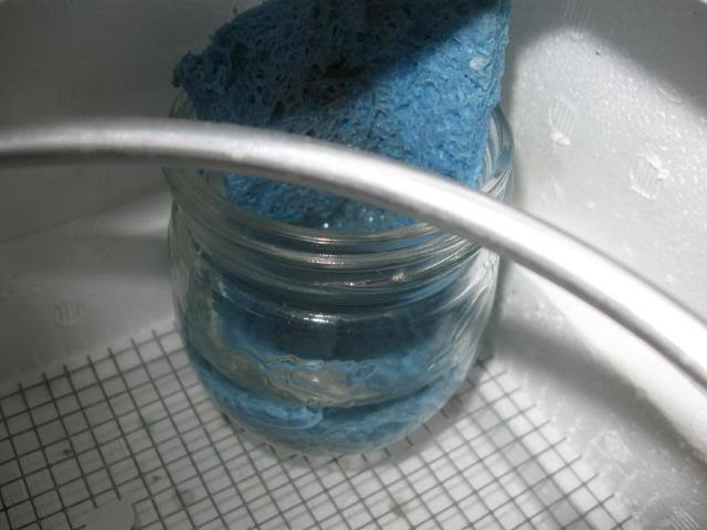 The wash bottles are actually where I got the idea, but I couldn't find any like that. But I was going through some stuff yesterday left over from my littlest baby's last surgery and thought hmm, I could adapt this, since I don't have any jars to hold sponges. I'll have to get a photo.
