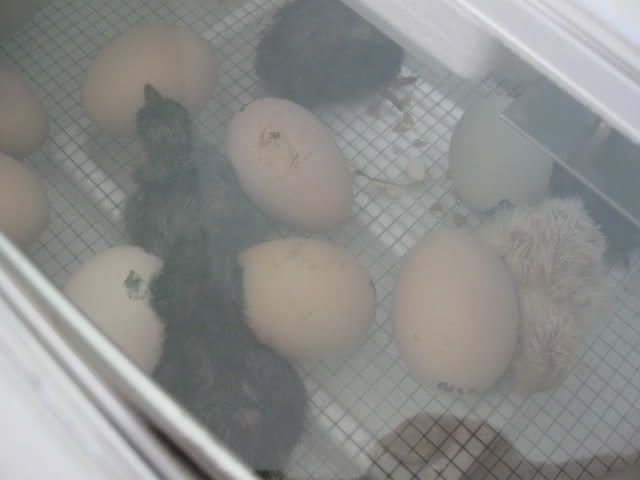 Ah! So, cute!!!! We candle again on Thursday, so I'm crossing my fingers! My temps and humidity have been staying fairly stable! I put a mason jar in and the temps are definitely holding better. I may have a *tiny* bit of hope we may get one to hatch! LOL. On a side note, Cmom, is your farm named Hilltop Farm? My dad owns a tree service out here in Cali & it's Hilltop Tree Service! I thought that was a neat coincidence!