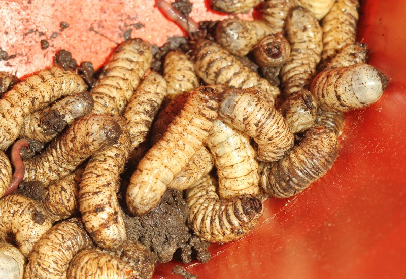Hi everyone, this is the first video of one or two. I am testing to see how long it will take these Figeater beetle grubs to eat 2 pounds of potato peels and some pieces tomatoes. There is about 100 in this bucket!